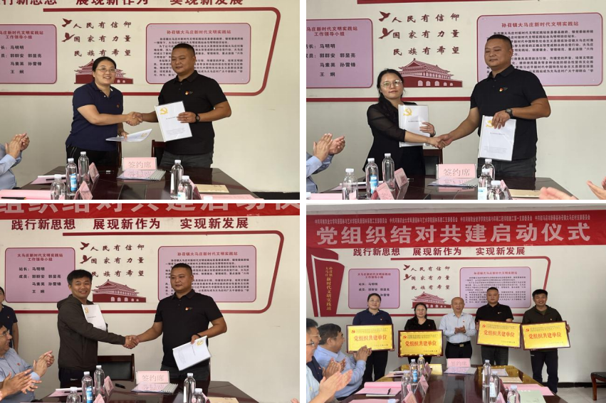 风景园林系教工党支部、园林系教工党支部与河南牧业经济学院包装与印刷工程学院教工第一党支部、驻马店市新蔡县孙召镇大马庄村党支部在大马庄村举行结对共建启动仪式。院党委书记侯永华、党委副书记赵九阳、副院长孔德政及教工支部党员代表,新蔡县人大常委会副主任、孙召镇党委书记田坤琦,大马庄村第一书记杨军,大马庄村党支部书记马明明,河南牧业经济学院包装与印刷工程学院院长张岩、党委副书记李帅堂、教工第一党支部书记卢芳芳及支部党员代表参会。启动仪式由杨军主持。