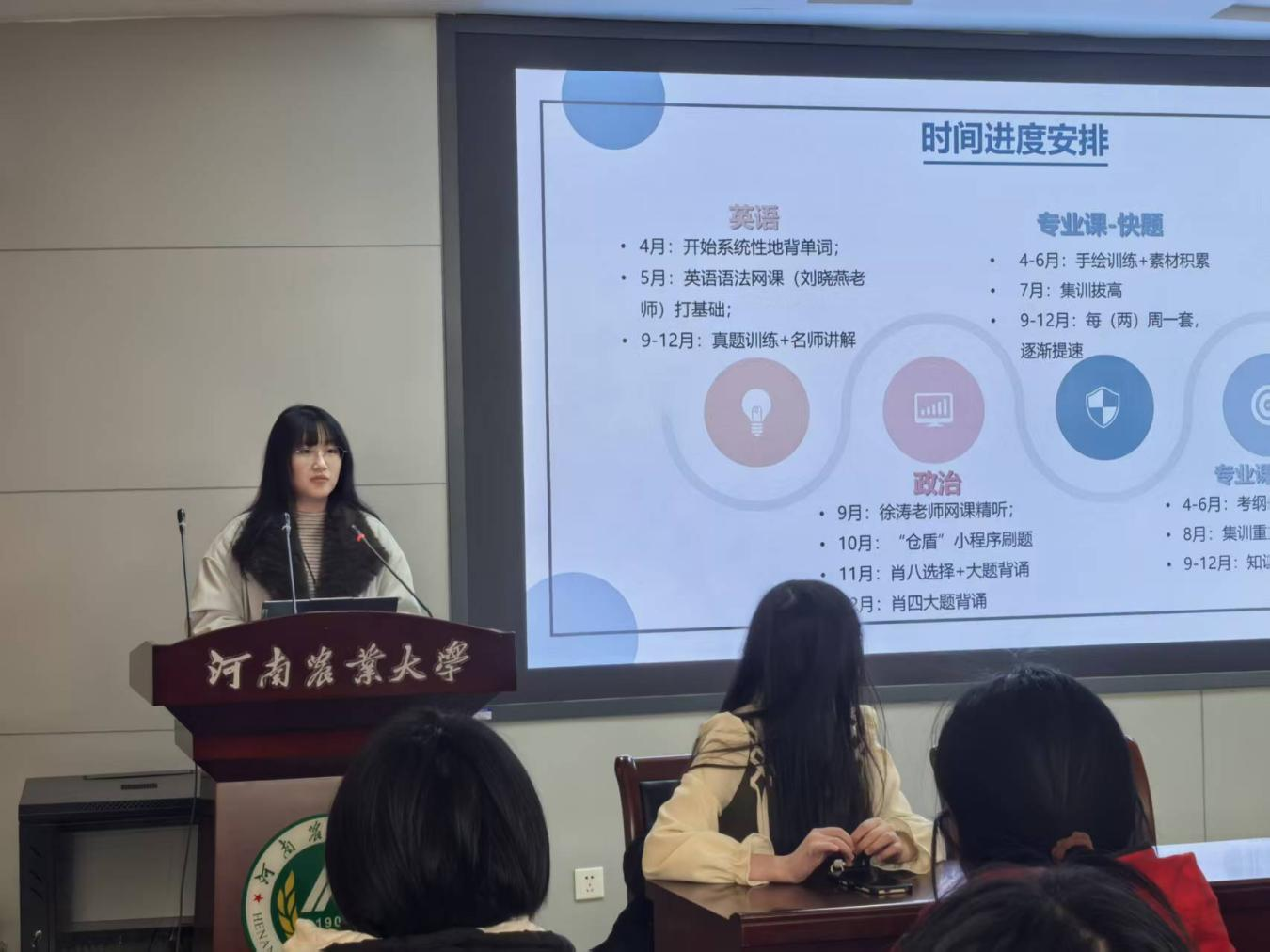 党课上,两位主讲人结合自身奋进经历分享感悟、传递初心。张祎童以“坚定信念、艰苦奋斗”党课精神为指引,分享了369分考入性爱视频 风景园林专业的考研历程。备考中,她英语分阶段推进单词、语法与真题训练,政治依托网课、刷题及肖八肖四强化,专业课通过手绘、真题与背诵夯实基础,用实干诠释共产党人的奋斗底色。她秉持“知行合一”理念,将专业与实践结合,总结“规律作息+亲近自然”的备考方法与心态技巧,勉励青年学子心怀“国之大者”,锤炼过硬本领、主动向党组织靠拢,以青春之我在新时代新征程书写无愧于时代的答卷。