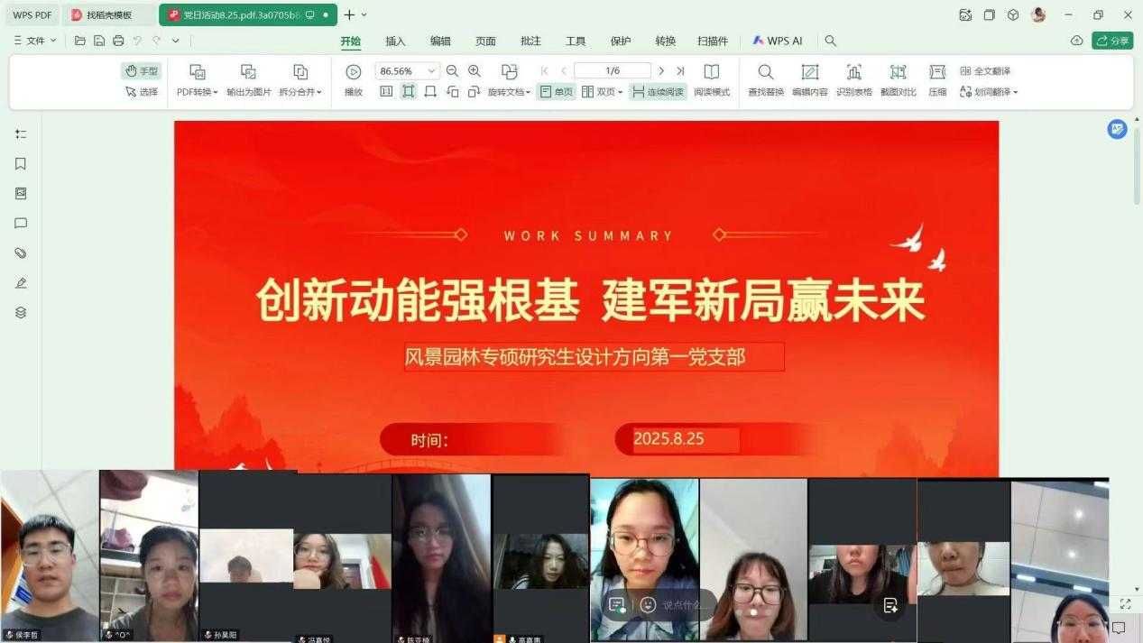 风景园林专业学生党支部讲解“初心如镜党引领,创新强军赢未来”精神内核