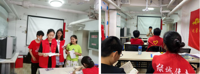 暑期爱心课堂活动分上午下午举行。活动中,7名大学生志愿者老师提前到达教室,帮助小朋友检查、批改作业,并给予耐心细致的讲解,以发掘、培养孩子们的兴趣为主要目的,更为广泛地拓宽了孩子们的兴趣范围。此外,志愿者老师还带领小朋友进行了书籍分享,为课堂融入开放性、创造性的元素,充分促进了孩子们想象力和能动力的发挥。最后,在志愿者老师的组织下,小朋友们依次上台发表自己的读书心得,交流自己的感受体会,锻炼了自己的语言表达能力。轻松诙谐的的授课方式和课堂氛围,让小朋友们感受到了同传统文化课不一样的课堂体验。