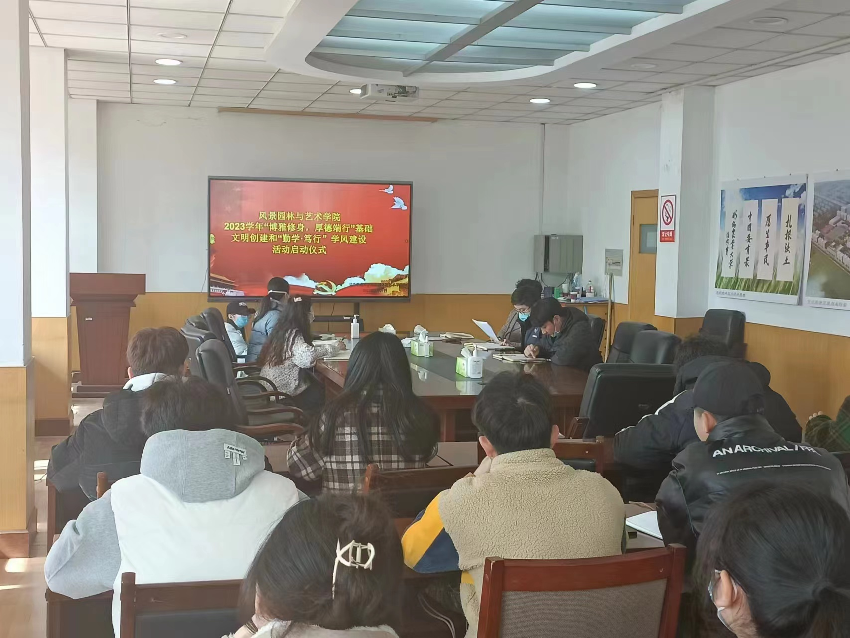 于2月21日下午在13号楼二楼第一会议室召开基础文明和学风建设启动会议,院团委书记徐珂,院团委副书记李雨澍,院团委老师史玥、芦嘉俊、马焱出席本次仪式。