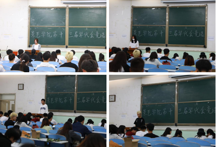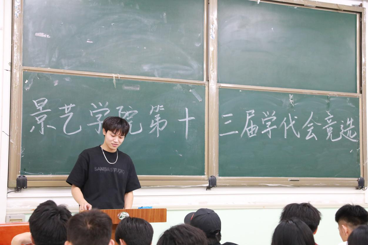 会议伊始,学生会主席赵国勋指出了本次活动的目的并介绍了学代会的相关情况。他表示,希望能通过此次活动选出更加优秀的学代会代表,维护学生的合法权益和民主权利,为以后学校及学院工作的有序开展奠定良好基础。随后竞选正式拉开帷幕,同学们按照竞选顺序进行发言。竞选同学举止大方、积极自信,结合自身实际及对学代会的了解进行自我介绍,纷纷表示渴望获得此次机会,充分展现自身优势和对未来工作的展望。发言结束后,各位评委秉持着公平公正、认真严谨的态度,根据现场表现以及综合能力的评定考察对竞选情况进行汇总,并选出17名院级学代会代表,分别是:产设19-2朱星宇、环设20-1李昭霖、产设20-2赵国勋、产设20-3蒋昊然、产设20-3李振生、园林21-1杨璐冰、景园21-1王怡卓、景园21-1梁羽彤、城规21-1赵耀、城规21-2张耀丹、环设21-3彭锐、产设21-2刘天航、产设21-2杨柳慧、产设21-3叶永耀、建筑22-1李建桓、建筑22-4王盼苗、设计22-6张冰雨。