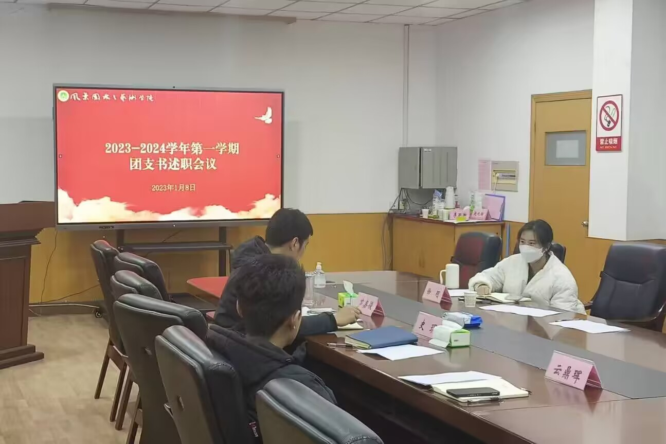 于文化路校区13号楼二楼第一会议室召开2023年基层团支部书记述职大会。院团委书记徐珂,院团委副书记芦嘉俊,20级辅导员史玥,23级辅导员云鼎晖出席本次会议,2022级、2023级全体团支书参加。