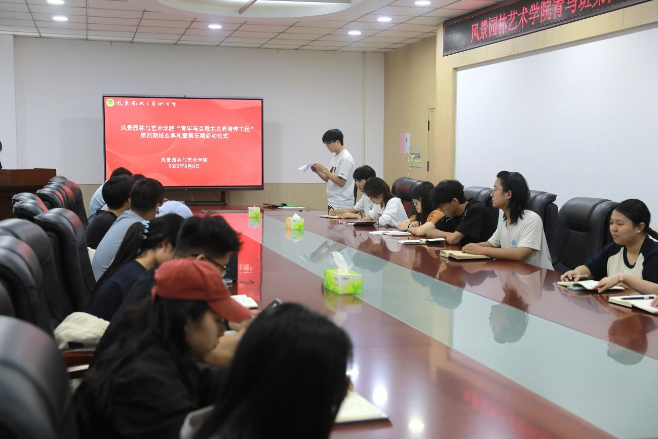 李雨澍宣读《风景园林与艺术学院2025年青马工程纪律要求》,明确积分制规则,保障培训实效。最后,徐珂讲话,勉励新老学员既要深学党的创新理论,更要结合专业特色,成长为“有理想、能吃苦、肯奋斗”的骨干力量。
