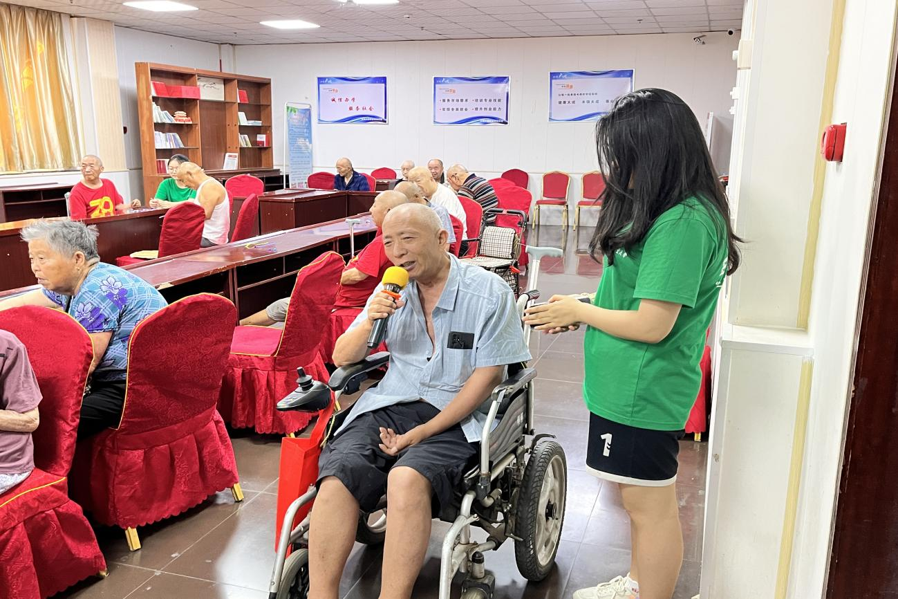 早上,志愿者们早早来到养老院,与老人们亲切打过招呼后,开始了当天的娱乐活动。在“抢彩条”游戏中,志愿者提前为老人分发彩条,认真讲解游戏规则,耐心陪伴,与老人们一起度过了愉快的游戏时间。活动结束前,志愿者们精心准备了合唱节目,邀请老人共同上台表演,用歌声为养老院的老人们带去了欢乐与笑声,丰富了他们的精神文化生活。