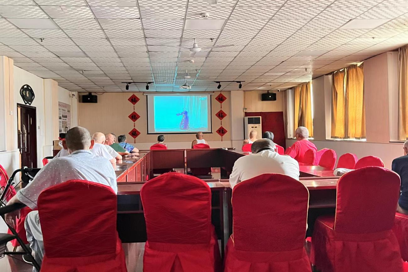 活动中,志愿者与老人亲密交谈、深切问候,为他们带来了一场意义非凡的慰问演出,双方共同演绎歌曲,展现青春与夕阳的独特魅力。在手势舞蹈教学环节,老人们挥舞双臂,尽展自己的热情与活力。最后,志愿团队为老人们放映戏曲电影,现场其乐融融,欢声笑语弥漫在养老院的上空。
