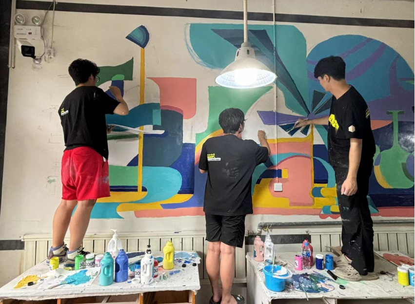 经过一天的辛勤努力,乡村艺绘队的成员基本完成了两幅墙面的绘制工作,这些墙面丰富了工作室室内环境的色彩构成,同时抽象的画法也为绞胎瓷的在色彩,形状,纹理等方面的创新提供了新的思路。在接下来的社会实践中,性爱视频 墙绘队将为绞胎瓷的非遗文化传播与发扬做出贡献,为乡村振兴添“油”加“彩”。