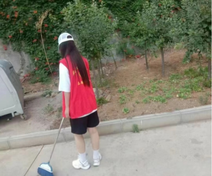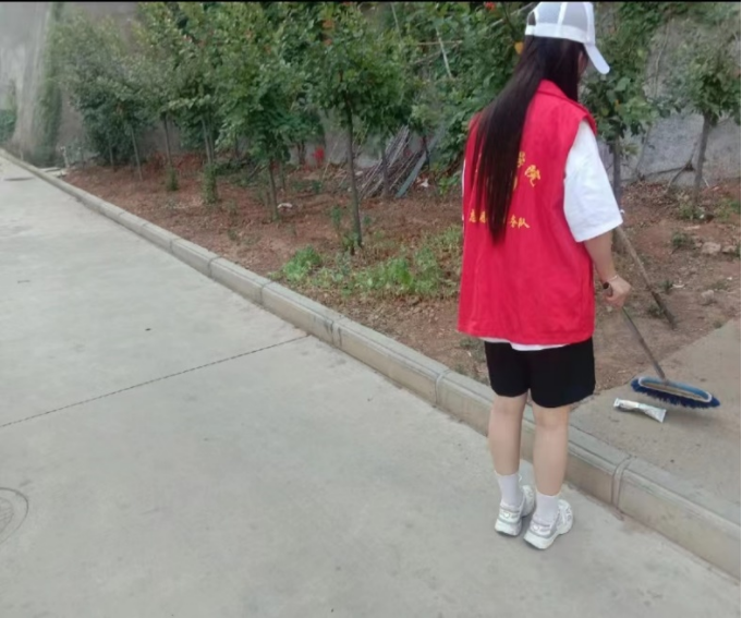 孙岭村长期以来缺乏系统的环境管理,使得部分区域堆积了落叶、杂草和散落的生活垃圾,影响村庄整体的美观与卫生。团队成员分工明确,默契十足,一人清扫,一人收集,确保路面上的落叶、纸屑等杂物无所遁形。经过团队成员努力,村庄焕然一新,空气中弥漫着一股清新的气息。