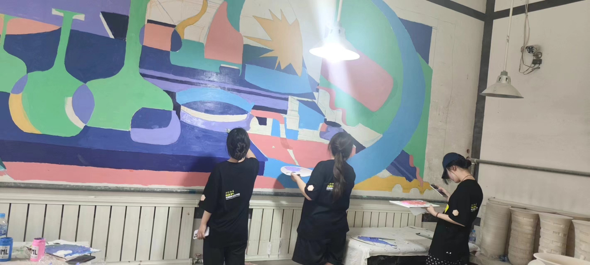 为深入挖掘传统文化精神,7月1日至7日,风景园林与艺术学院“文化推介队”成员跟随院学生会志愿者赴焦作市修武县西村乡当阳峪村金谷轩绞胎瓷非遗园开展墙绘活动。
