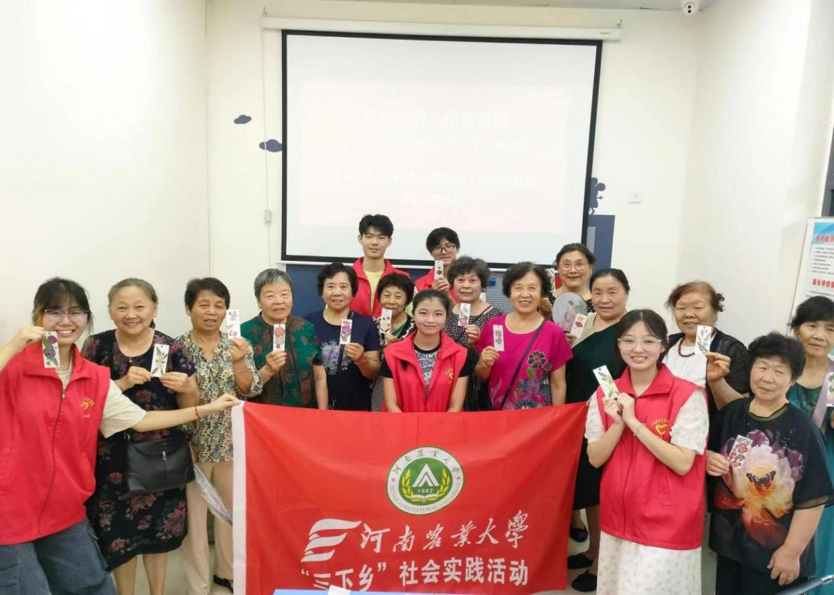 为响应“三下乡”政策号召,弘扬中华民族优秀传统文化,丰富社区居民的精神文化生活,8月8日,风景园林与艺术学院“微暖伴霞”实践服务队赴郑州市金水区文化路街道农西社区开展公益服务活动。