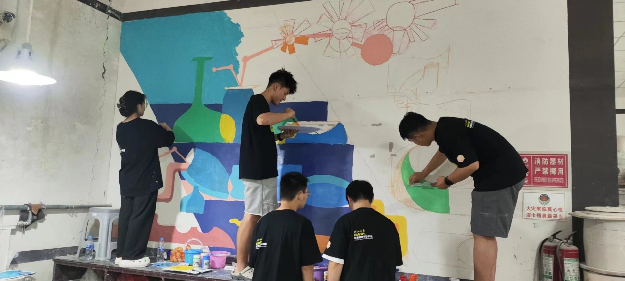 为深入学习贯彻习近平新时代中国特色社会主义思想,组织引导广大青年学生在社会实践中受教育、长才干、做贡献,7月5日,风景园林与艺术学院“乡村艺绘队”实践团前往河南省焦作市修武县西村乡当阳峪村金谷轩绞胎瓷非遗园开展三下乡暑期社会实践墙绘活动。