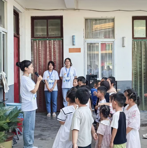 心火支教团队带队队长进行发言。她表示,此次夏令营将为孩子们带来包括科学实验、艺术、音乐、体育、舞蹈、语言学习等丰富多彩的兴趣课堂,着力培养孩子多方面发展。随后各队员依次向孩子们进行了自我介绍。互动环节中,各班班主任带着孩子们进行小游戏,在班级中建设班级文化,定班歌班舞与口号,最后进行班级文化展示。
