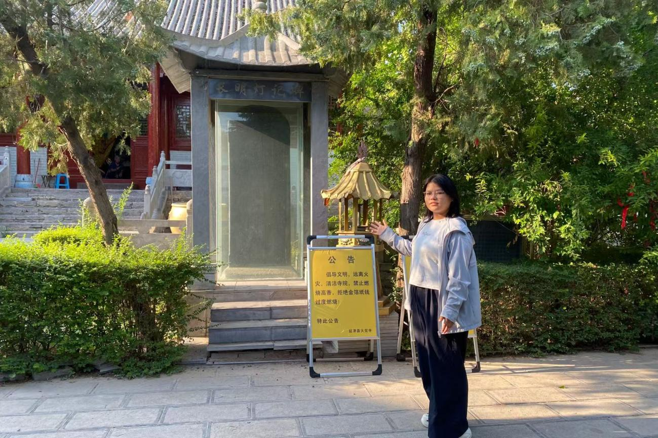 实践中,成员们首先调研了大觉寺历史,梳理了唐塔、赵孟頫碑刻等文化符号,接着化身导游为游客讲解建筑特色与典故。活动以实地考察、文化讲解、文旅调研及新媒体推广的形式,讲述了万寿塔的建造历史及碑刻的艺术价值,传递古寺文化魅力。