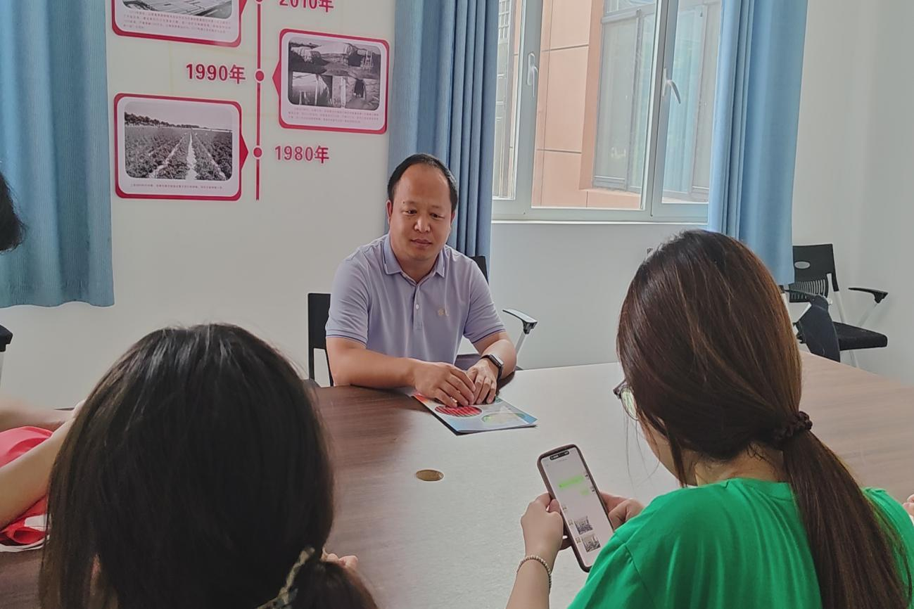 部分成员与农业企业负责人深入座谈,在交流过程中,成员们结合专业知识,就如何打造具有特色的农业景观节点,以吸引更多游客,推动农旅融合发展提出了详细的规划方案。与此同时,另一部分实践团成员开展了一场别开生面的乡村美育推广活动。他们通过设置艺术展览区,展示了南乐求实小学孩子们在“艺术赋能乡村”美育课堂上创作的优秀画作,这些充满童真童趣、描绘家乡风貌的作品吸引了众多当地居民驻足欣赏。实践团成员还在现场设置了互动环节,邀请居民们一同参与简单的绘画创作,用艺术的方式记录家乡的美好瞬间。