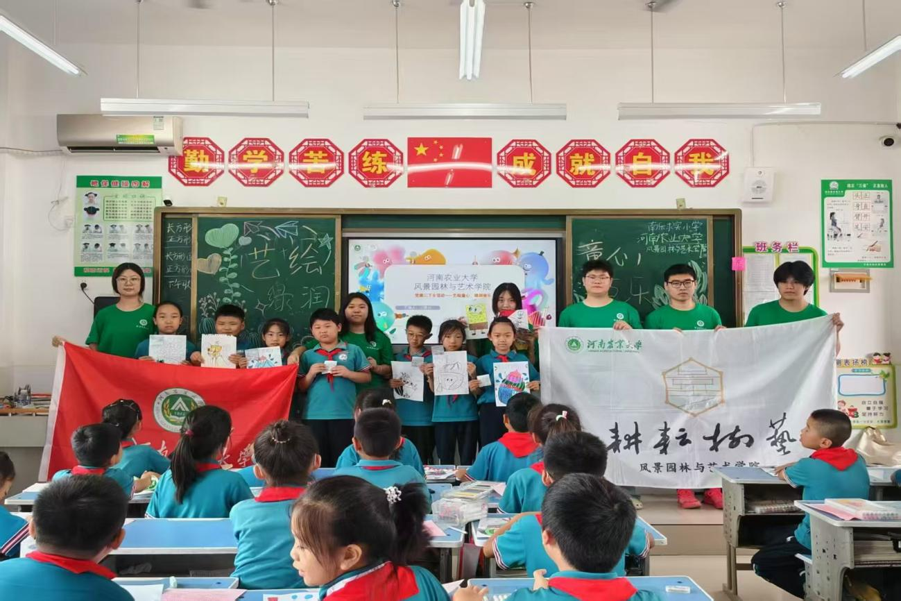 当天上午,实践团首先走进西红柿小镇,深入田间地头与大棚深处。成员们为农户详细讲解现代化种植技术,优化大棚内部布局,让种植空间得到高效利用。下午实践团开展文化传播活动,在南乐求实小学,志愿者们引导孩子们用画笔描绘心中的动画人物与美好家园,充满童趣的画作展现出孩子们丰富的内心世界。