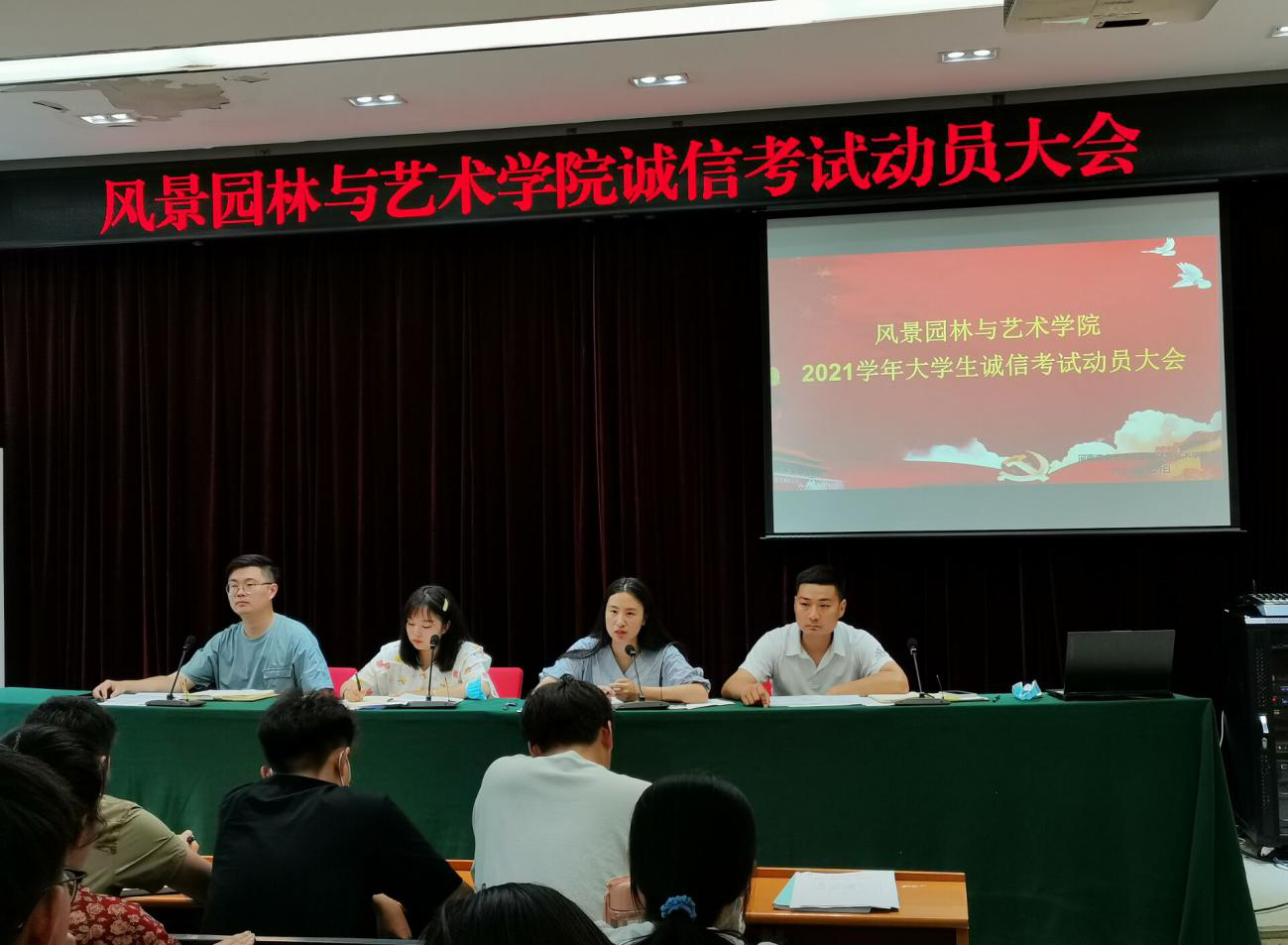于文化路校区2号楼四楼学术报告厅召开2020-2021学年第二学期诚信考试动员暨诚信教育大会。院团委书记徐珂,院团委老师史玥、马焱、芦嘉俊及全体学生干部出席会议。
