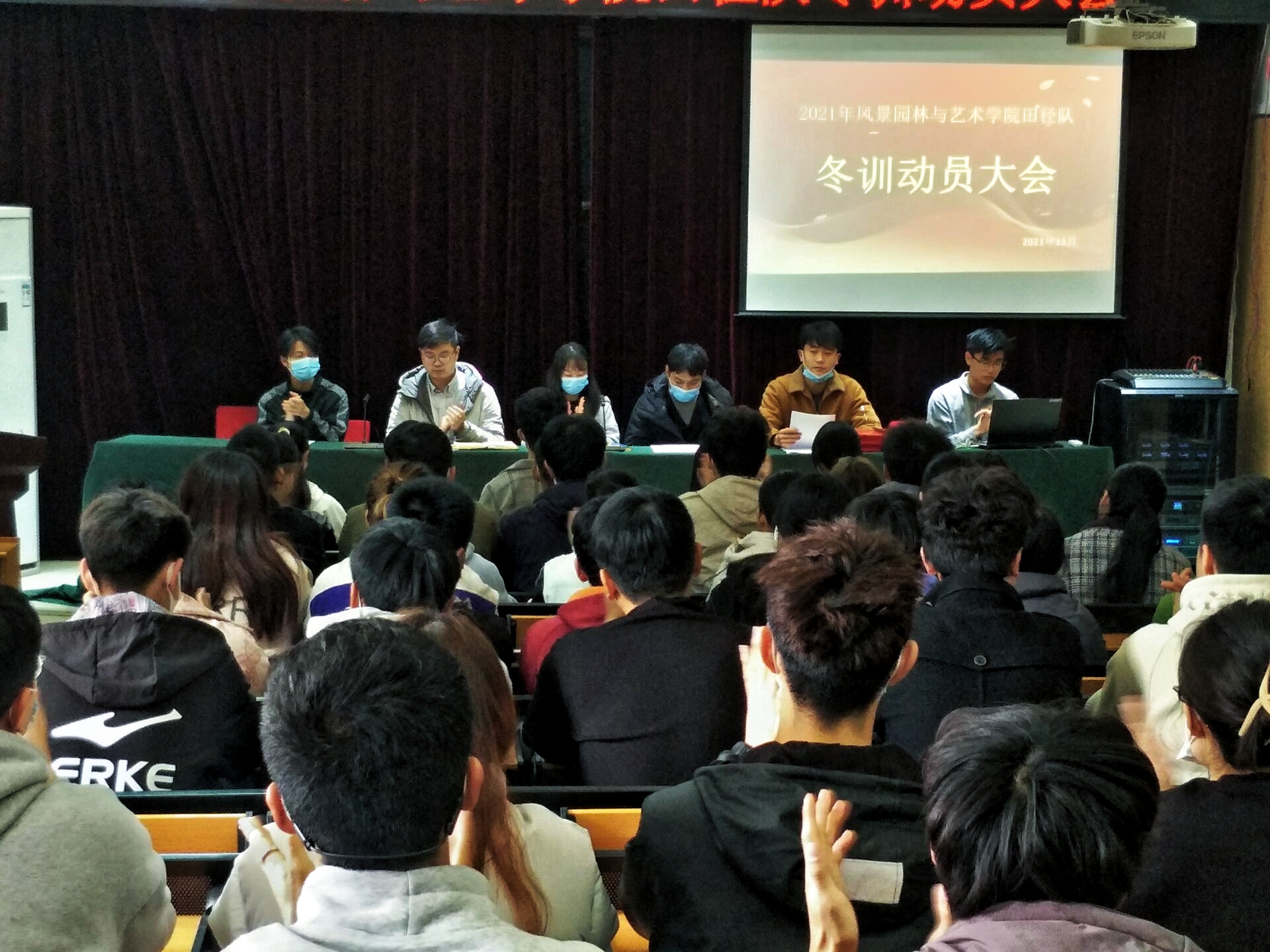 于11月26日中午在2号楼四楼报告厅召开2021年风景园林与艺术学院田径队冬训动员大会。院团委老师史玥、马焱、芦嘉俊出席会议,院学生会主要成员及全体田径队队员参加会议,本次会议由院体工委主席李黎主持。