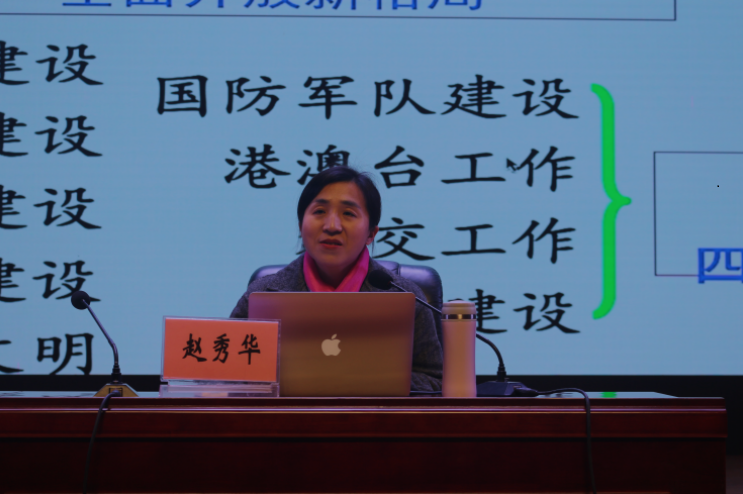 开班典礼结束后,由中共河南省委党校党建部赵秀华老师作题为“学深悟透《习近平谈治国理政》第三卷”的首场报告。她分别从宏观层面、中观层面及微观层面三个角度对《习近平谈治国理政》第三卷进行深入阐述,系统讲解了习近平新时代中国特色社会主义思想的科学体系,进一步引导师生党员学深悟透文件精神,牢牢把握党的十九大以来具有重大突破、重大创新、重大发展意义的思想观点。