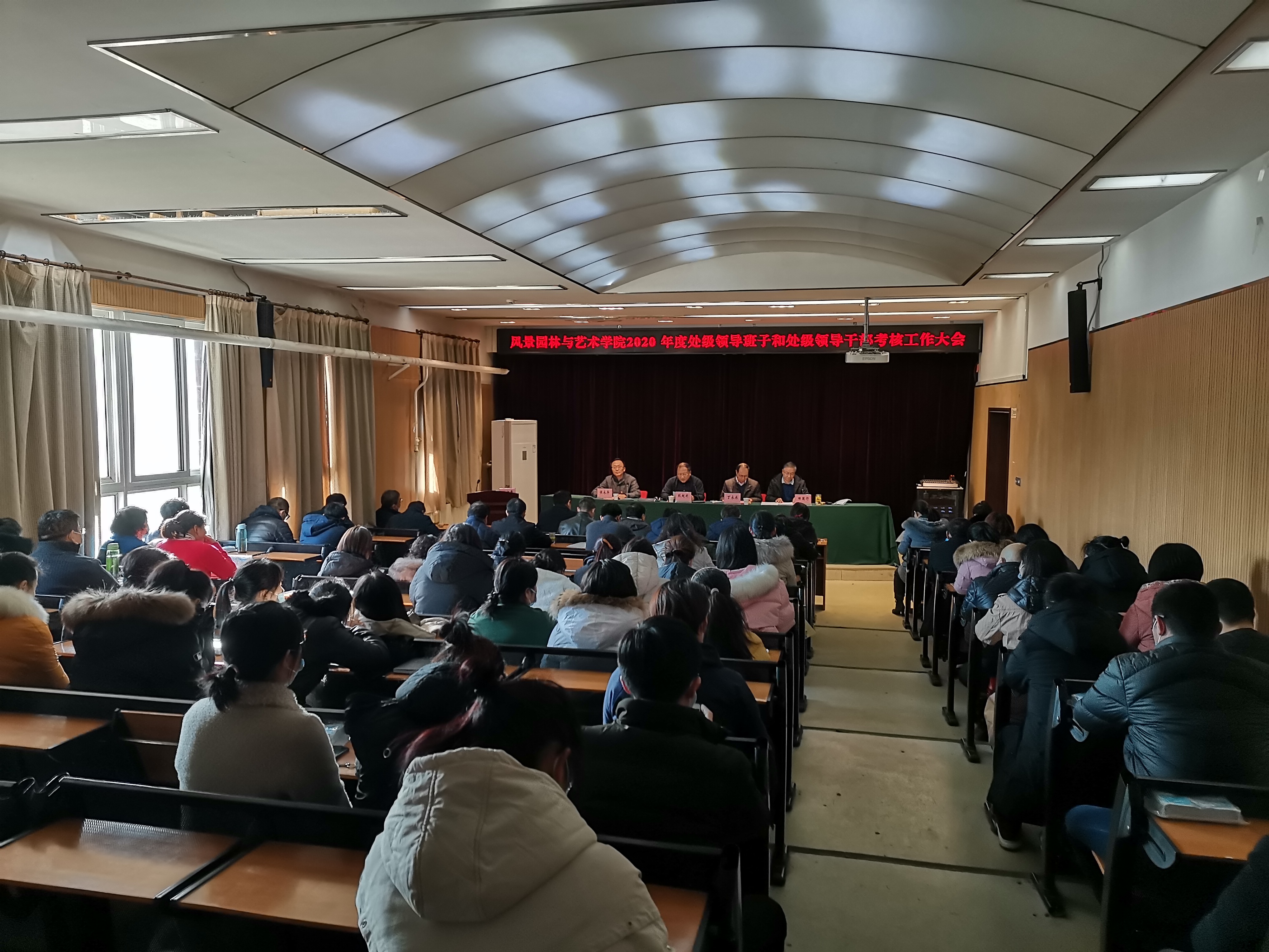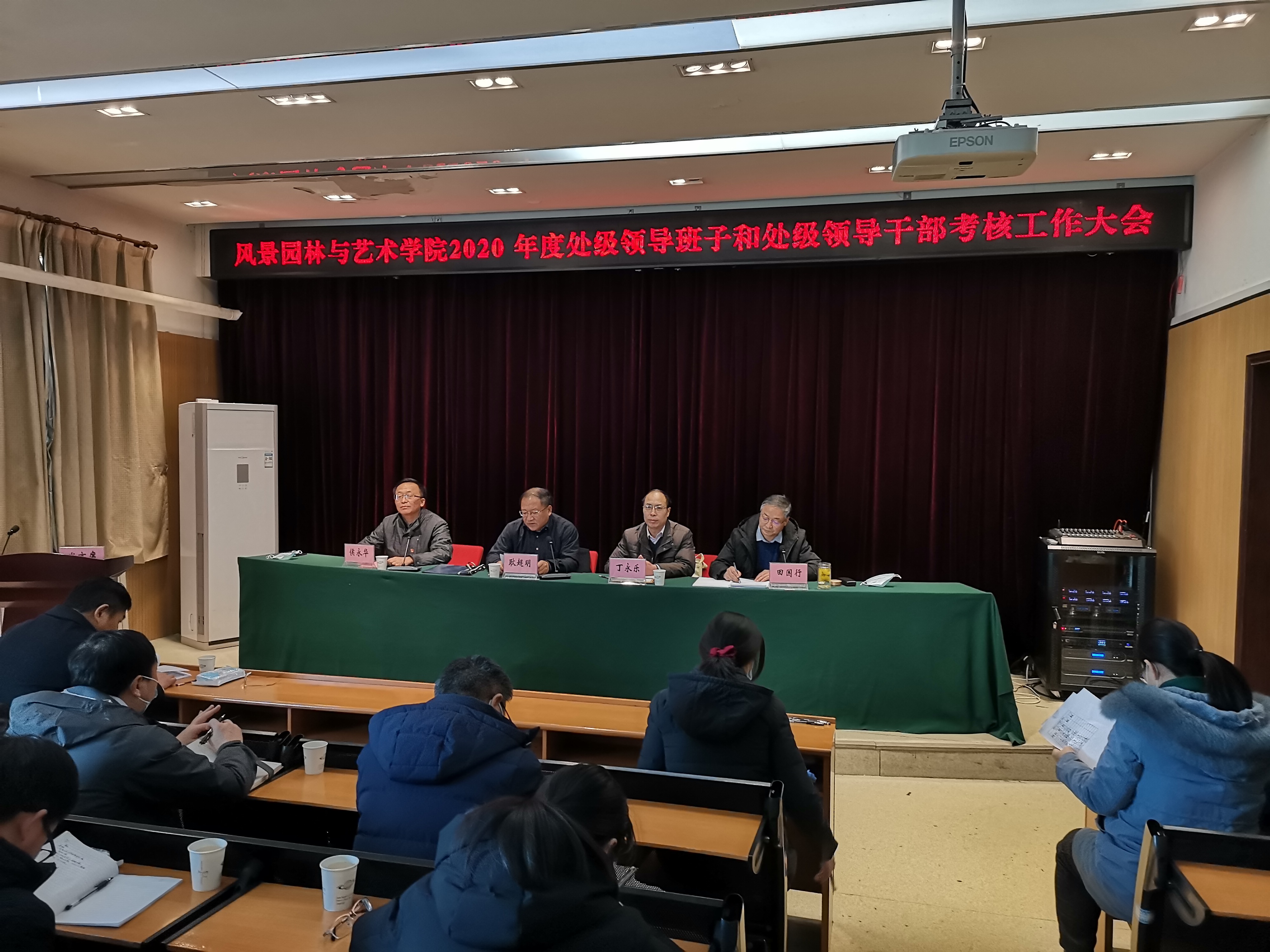 在二号楼四楼学术报告厅举行2020年度处级领导班子和处级领导干部考核工作会议。校党委考核工作组组长正处级组织员耿超明,副组长副处级组织员丁永乐出席会议。院领导班子成员和全体教职工参加了会议。会议由院长田国行主持。