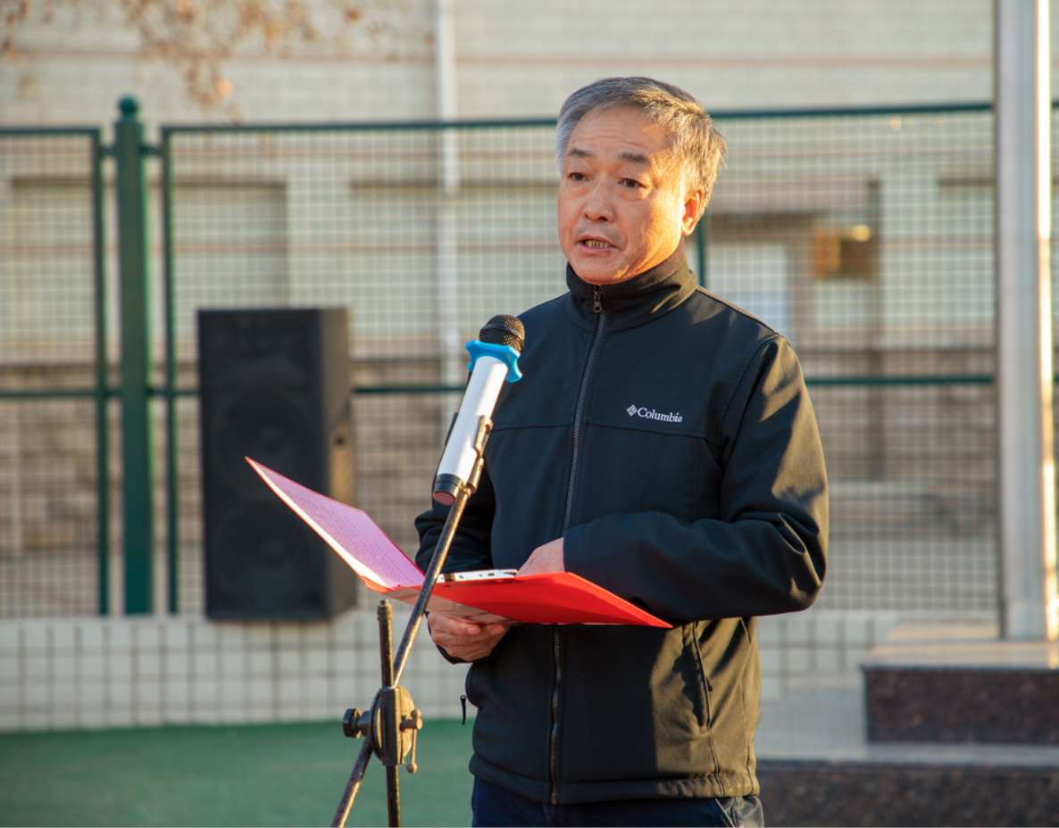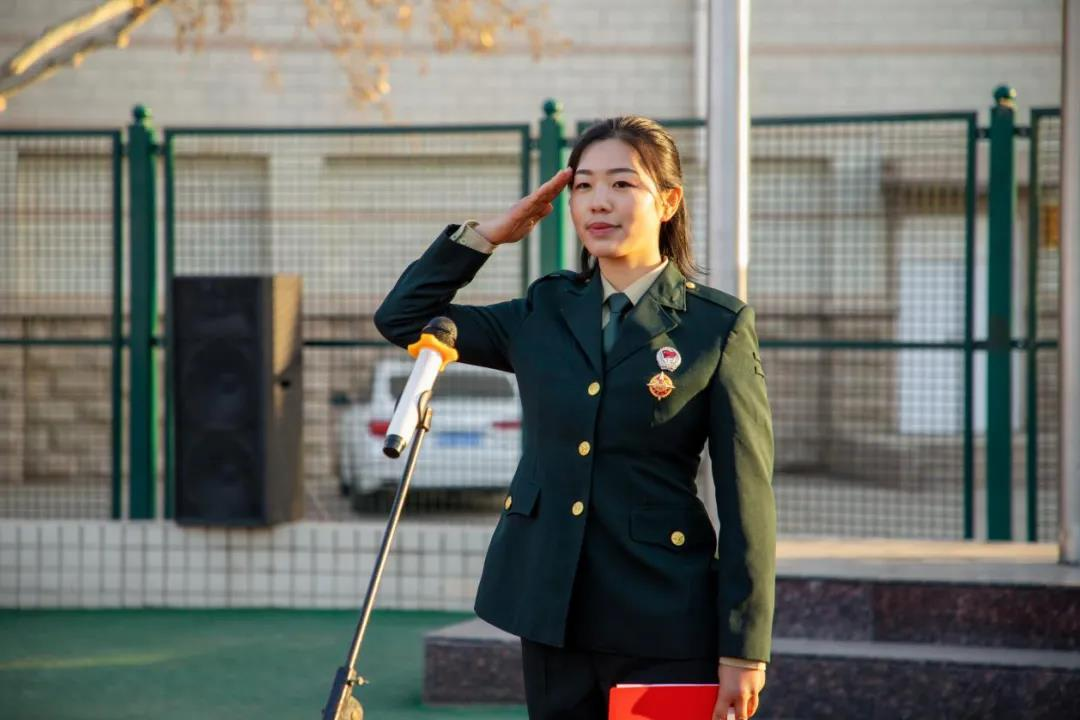 7时整,升国旗仪式正式开始。随着朝阳冉冉升起,国旗护卫队迈着铿锵的步伐走向国旗台。雄壮的《义勇军进行曲》奏响,全院师生肃穆而立,高唱国歌,庄严注视着鲜艳的五星红旗徐徐展开,向国旗行注目礼。院长田国行在升旗仪式讲话中强调,在建党一百年和建院一周年的重要节点上,景艺学院全体师生要学习英雄们对党忠诚、矢志报国的崇高品格和不怕困难、英勇顽强的战斗精神,厚植爱国主义情怀,勇担时代责任,以全新的面貌、昂扬的姿态迎接新的困难、攻破新的挑战,展现景艺风采,创造出新的成绩。学生代表,2019级环境艺术设计3班的、中国人民解放军火箭军96712部队退役复学的王雪梅同学深情发言,她首先分享了自己两年绿色军营的生活经历和成长收获;并倡议,作为新时代青年,要夯实专业基础、练就过硬本领,坚定理想信念、勇于担当,直面前进过程中可能出现的困难和挑战,为祖国的建设贡献自己的青春力量。
