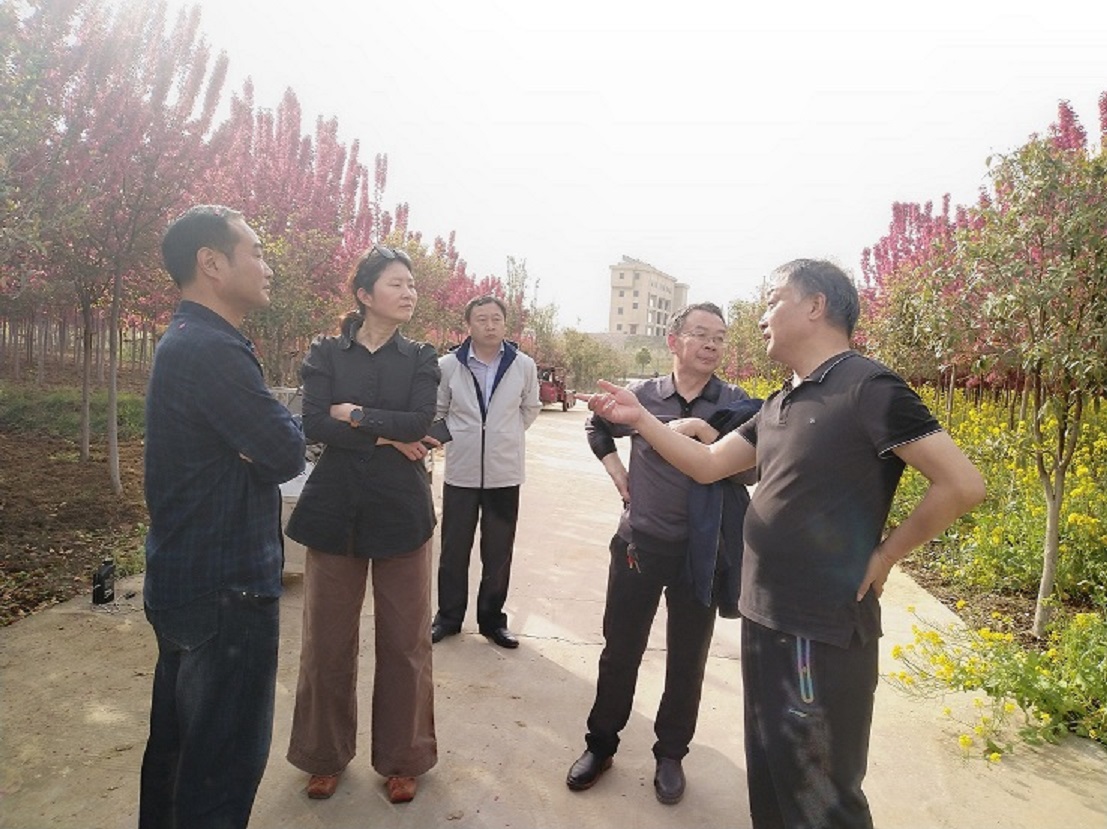 带来福生态园基地位于新郑市新村镇,占地660余亩,以高杆海棠为主,种植绿化苗木3万余株。该基地区位优势明显,“亚洲第一渡槽”的南水北调渡槽和新郑市双洎河在基地交叉,自然资源丰富,生态环境良好,具有进行教学科研实践的天然优势。随后,双方就高杆海棠的研发、利用和进一步发展进行了深入交流。