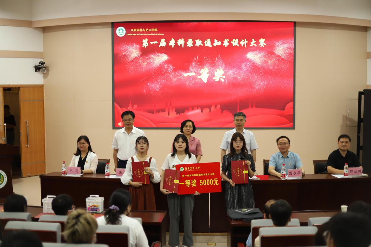 大会伊始,侯永华作大赛组织工作总结发言。他首先对主办方校招生办公室、校学生处,协办方风景园林规划设计院等部门的信任和支持致以诚挚的谢意。他指出,新生录取通知书是一张学校的名片,是向新生展示学校文化风采的平台;自3月底活动启动以来,风景园林与艺术学院高度重视,领导班子、学院师生都积极参与到大赛的工作中来。他强调,本次大赛充分结合目前的教育形式,发挥了我校艺术设计专业、规划专业的特色和特长,把设计理论落实到具体实践中,不仅促进了学生的身心发展,提升了学生的文化素养,而且宣传了我校,提高了学校的影响和知名度。他总结,本次大赛是一次真正意义上的学生专业技能的锻炼,是一次教师理论教学的实践检验,是一次劳动教育和美育教育,是一次学校百年历史、百年办学文化的大学习,也是一次广大师生和校友爱校荣校的再教育。