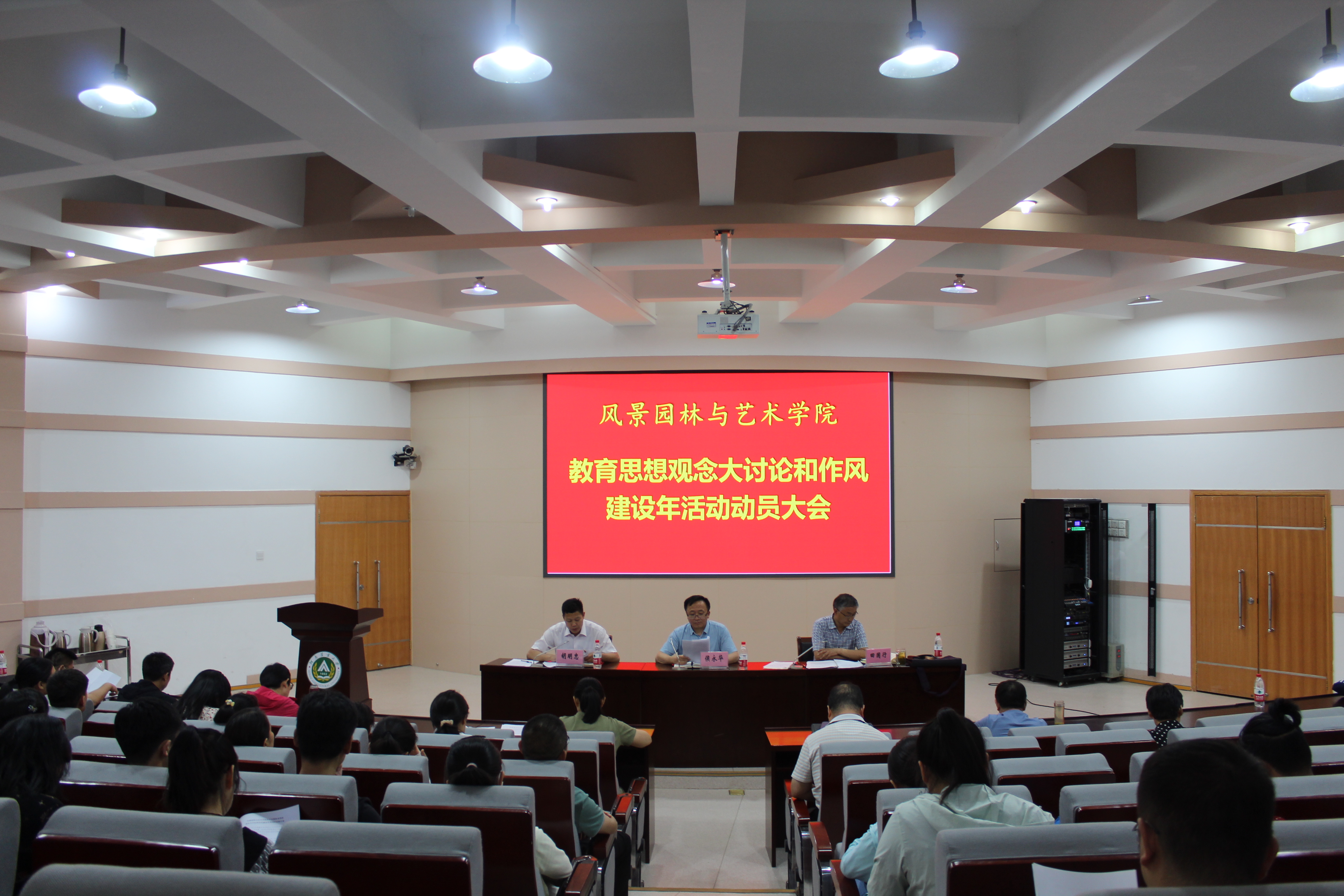 大会伊始,胡明忠宣读了《风景园林与艺术学院关于开展教育思想观念大讨论和作风建设年活动的实施方案》及《风景园林与艺术学院教育思想观念大讨论和作风建设年学活动领导小组及工作组成员名单》。