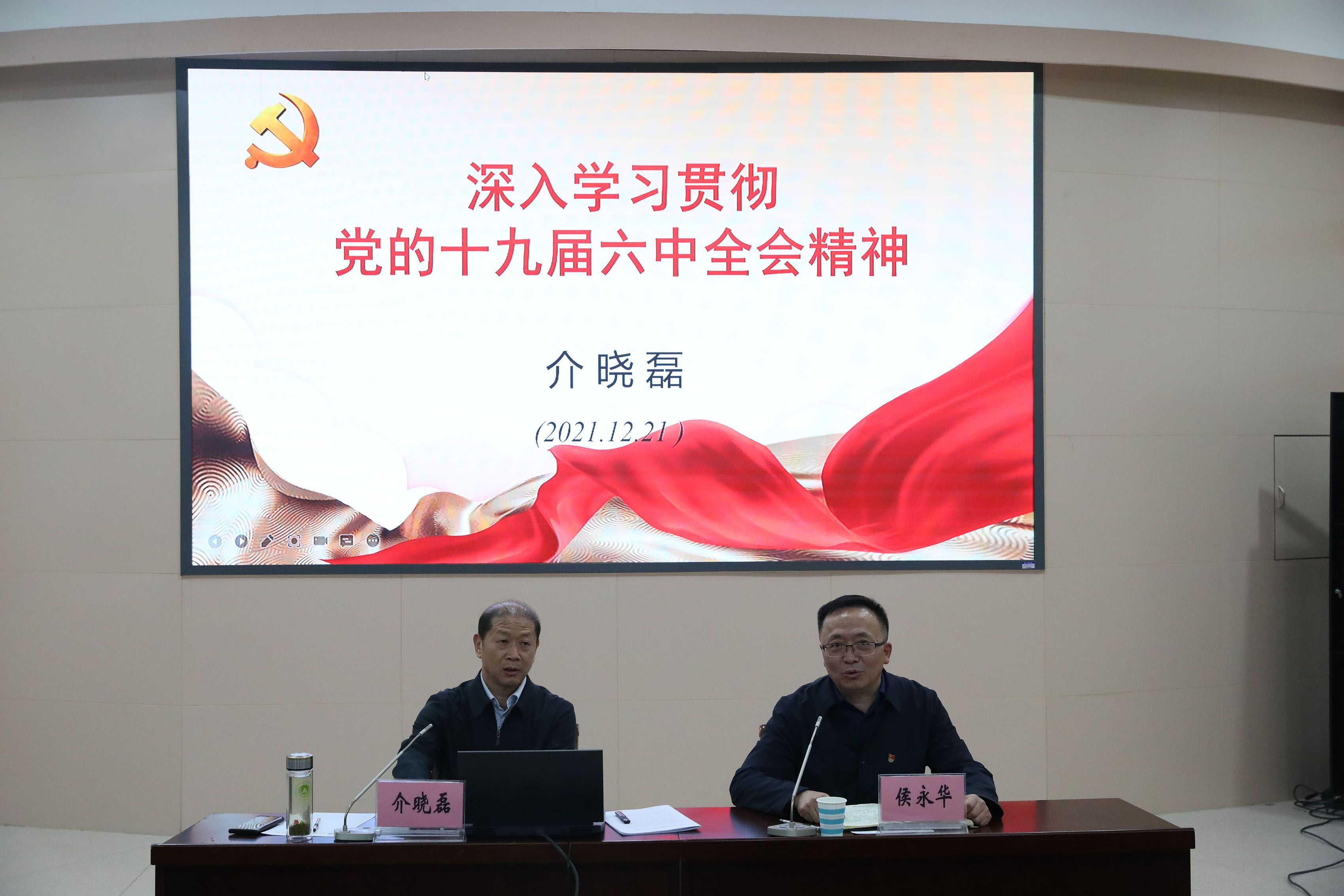 12月21日,校长介晓磊在文化路校区为联系单位师生宣讲党的十九届六中全会精神。财务处、林学院、风景园林与艺术学院、机电工程学院、资源与环境学院班子成员和师生党员代表聆听报告。
