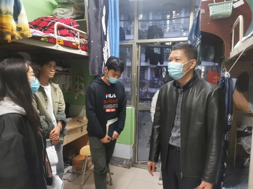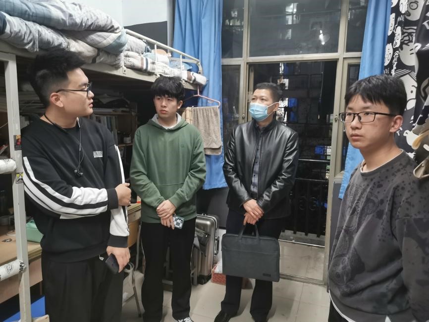 党委副书记胡明忠,团委书记徐珂和其他团委老师前往学生桃李宿舍进行走访慰问。