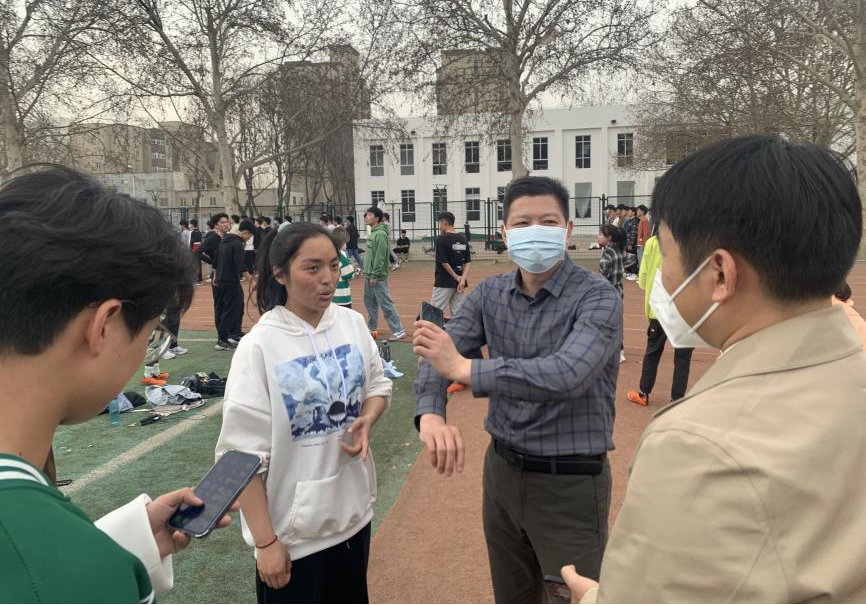 党委副书记胡明忠、团委副书记李雨澍、团委老师马焱前往文化路校区田径场看望性爱视频
