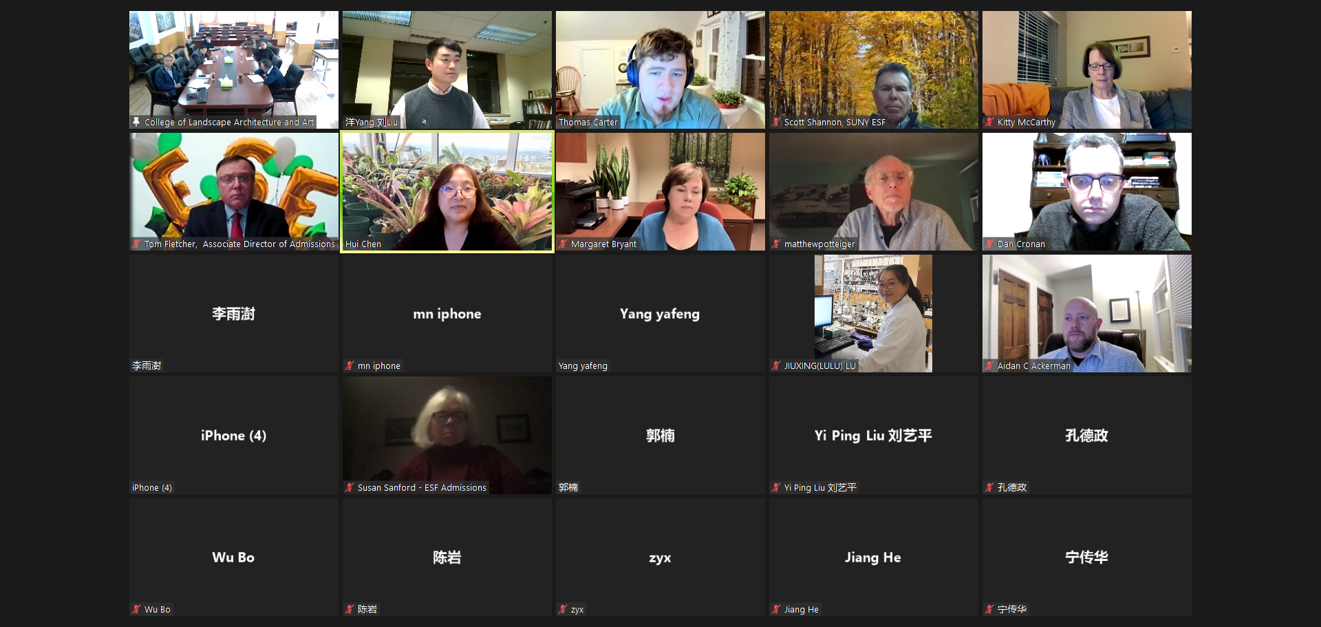 玛格丽特·布莱恩特介绍了ESF风景园林系发展历程,回顾了双方合作历史。玛格丽特对院长田国行访美期间开拓的合作成就表示高度赞赏,认为不仅实现了合作办学暨双学位授予项目顺利签约,还顺利组建了3个学科创新引智团队,开拓了从本科到硕博士及访问学者全过程、从学生到教师队伍多层次的合作局面。玛格丽特代表风景园林系全体教工对中方积极推动合作表达了衷心感谢,并表示将不遗余力做好中方赴美学生课程生活服务工作,热烈欢迎中方派遣更多教职人员访美。玛格丽特邀请风景园林学系骨干教师介绍了各自科研方向,对双方未来开展更为深入的教研合作充满信心。