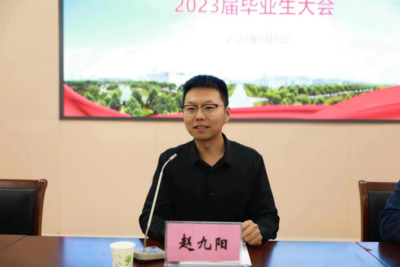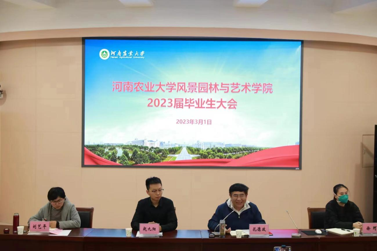 在文化路校区300人报告厅召开2023届毕业生大会,院党委副书记赵九阳、副院长孔德政、园林系系主任刘艺平、院团委书记徐珂出席本次会议,学院2023届全体毕业生参会。会议由赵九阳主持。