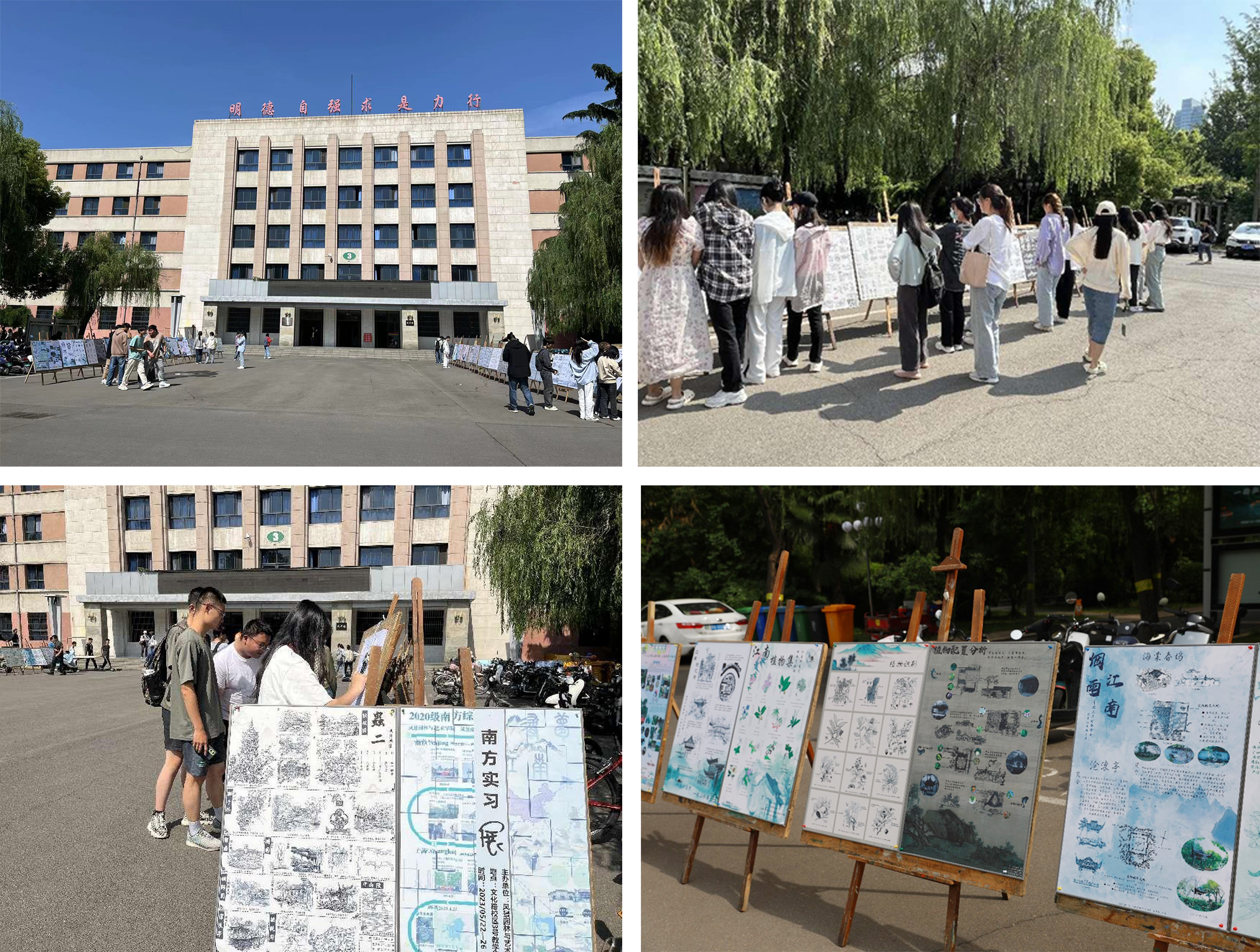 本次南方综合实习展为期一周,主要展示了  风景园林与园林专业师生在对上海、南京、杭州武汉、苏州等城市进行的实践教学成果。师生们为大家呈现的展板作品共60余幅,详实地展示了江南古典园林的造景手法,南方园林植物的种类、习性与种植设计,江南地区古遗址的保护策略,南方城市更新策略,江南城市与自然景观融合方式等内容。景园专业和园林专业学生纷纷表示受益匪浅,通过观展,激发了他们对专业学习的动力。