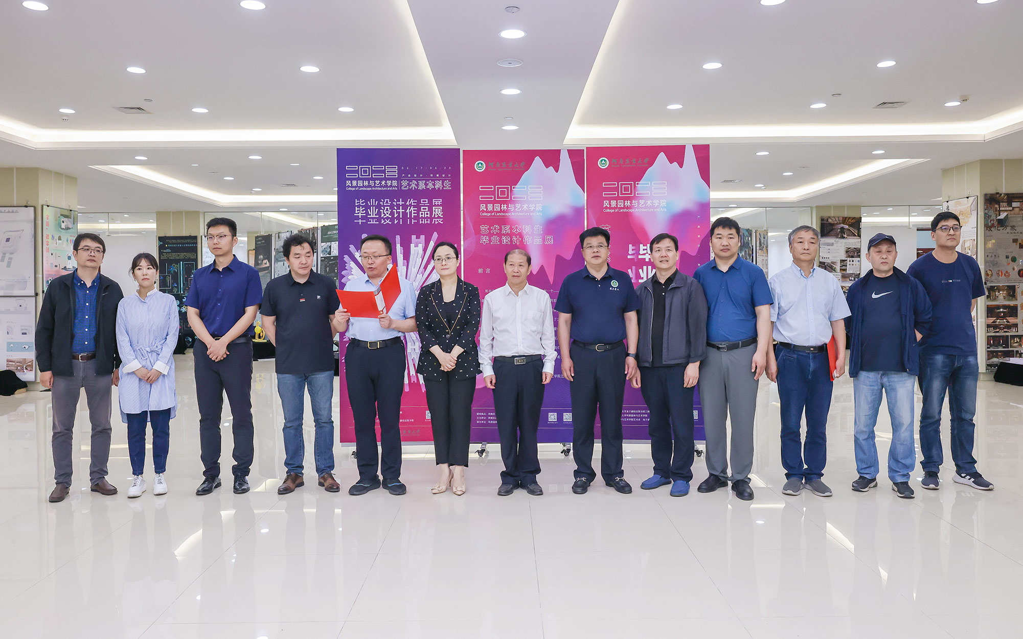 在现场热烈的氛围中,校长介晓磊宣布我校风景园林与艺术学院艺术系2023届本科生毕业设计作品展开幕!