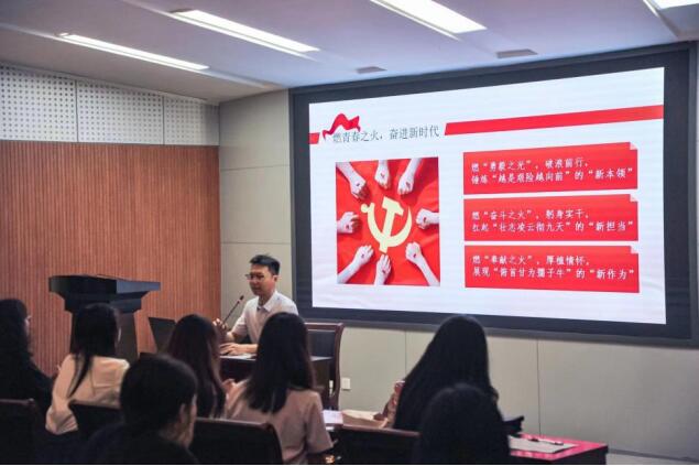 党课伊始,院党委副书记赵九阳带领全体毕业生党员面向党旗重温入党誓词,坚定理想信念,牢记职责使命。赵九阳以回望“初心路”,振兴“奋进魂”为题,鼓励毕业生燃“勇毅之光”,破浪前行,锤炼“越是艰险越向前”的“新本领”;燃“奋斗之火”,躬身实干,扛起“壮志凌云彻九天”的“新担当”;燃“奉献之火”,厚植情怀,展现“俯首甘为孺子牛”的“新作为”。并为毕业生党员赠送政治生日卡。