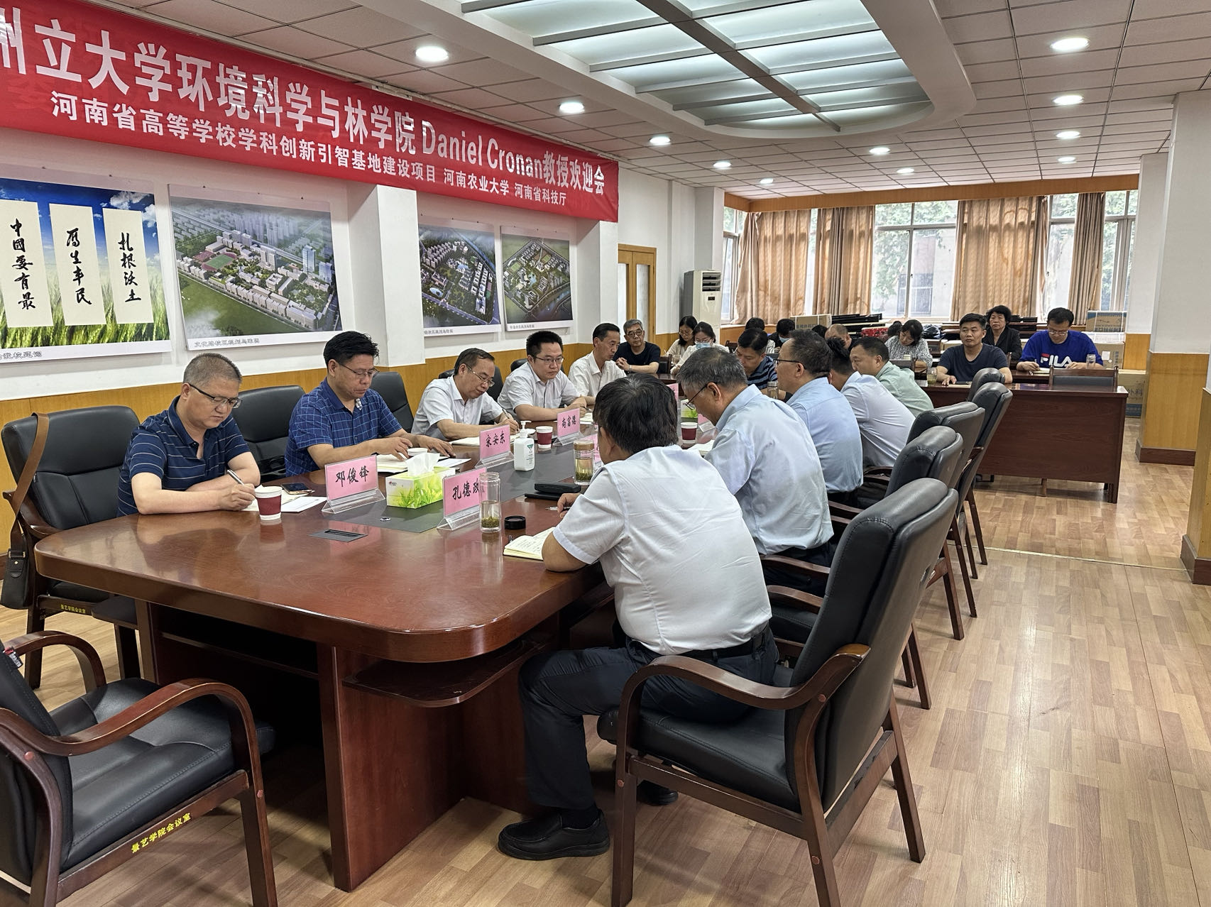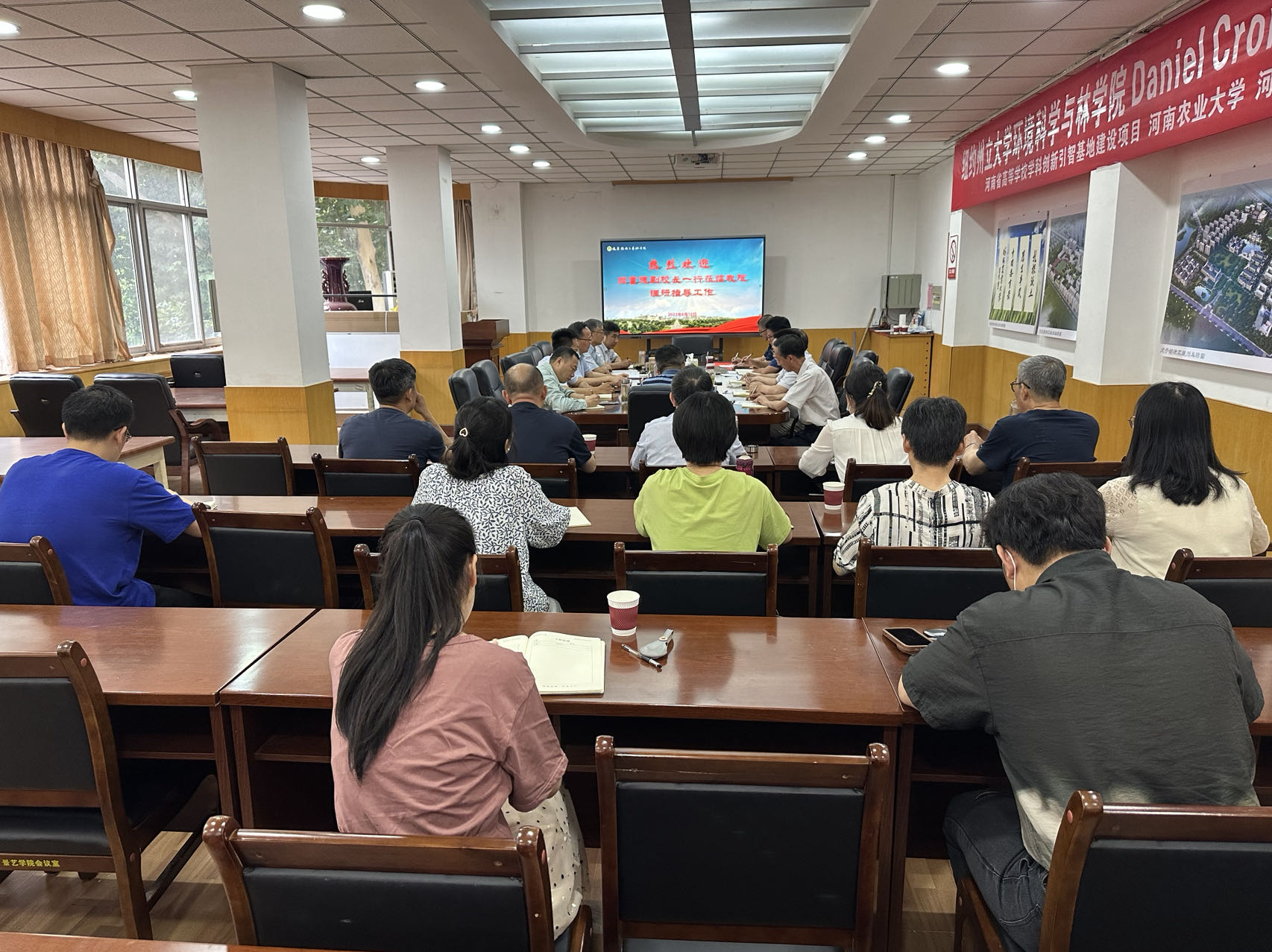 为扎实推进学习贯彻习近平新时代中国特色社会主义思想主题教育走深走实,6月16日下午,副校长尚富德带队到风景园林与艺术学院开展专题调研。发展规划处处长张朝阳、研究生院院长宋安东、科教园区主任吴永林、学报编辑部主任邓俊峰、人事处副处长李兴旺以及学院班子成员、教授代表、各系室负责人参加了调研座谈会。会议由院党委书记侯永华主持。