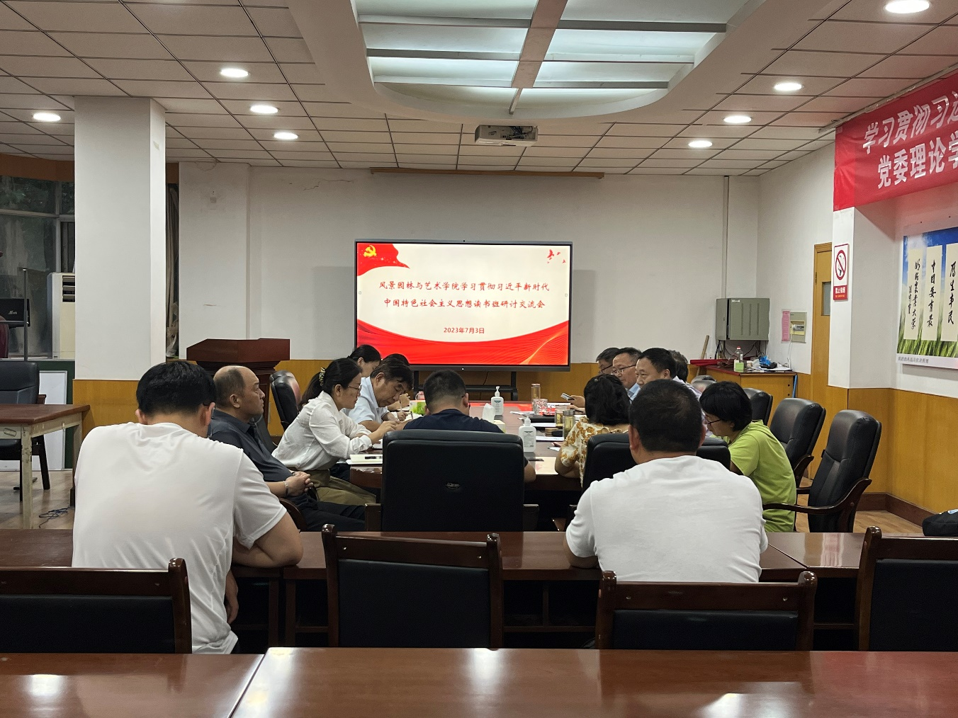 7月3日下午,风景园林与艺术学院在文化路校区举行学习贯彻习近平新时代中国特色社会主义思想主题教育读书班研讨交流会。本次交流研讨会的主题是:重实践、立新功。院领导班子及学院中层正职参加学习。研讨会由院党委书记侯永华主持。