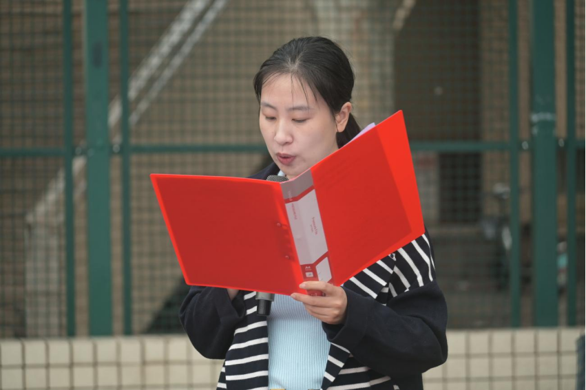升旗仪式的最后,在场师生共同歌唱校歌《绿色颂》,表达对学校的热爱。
