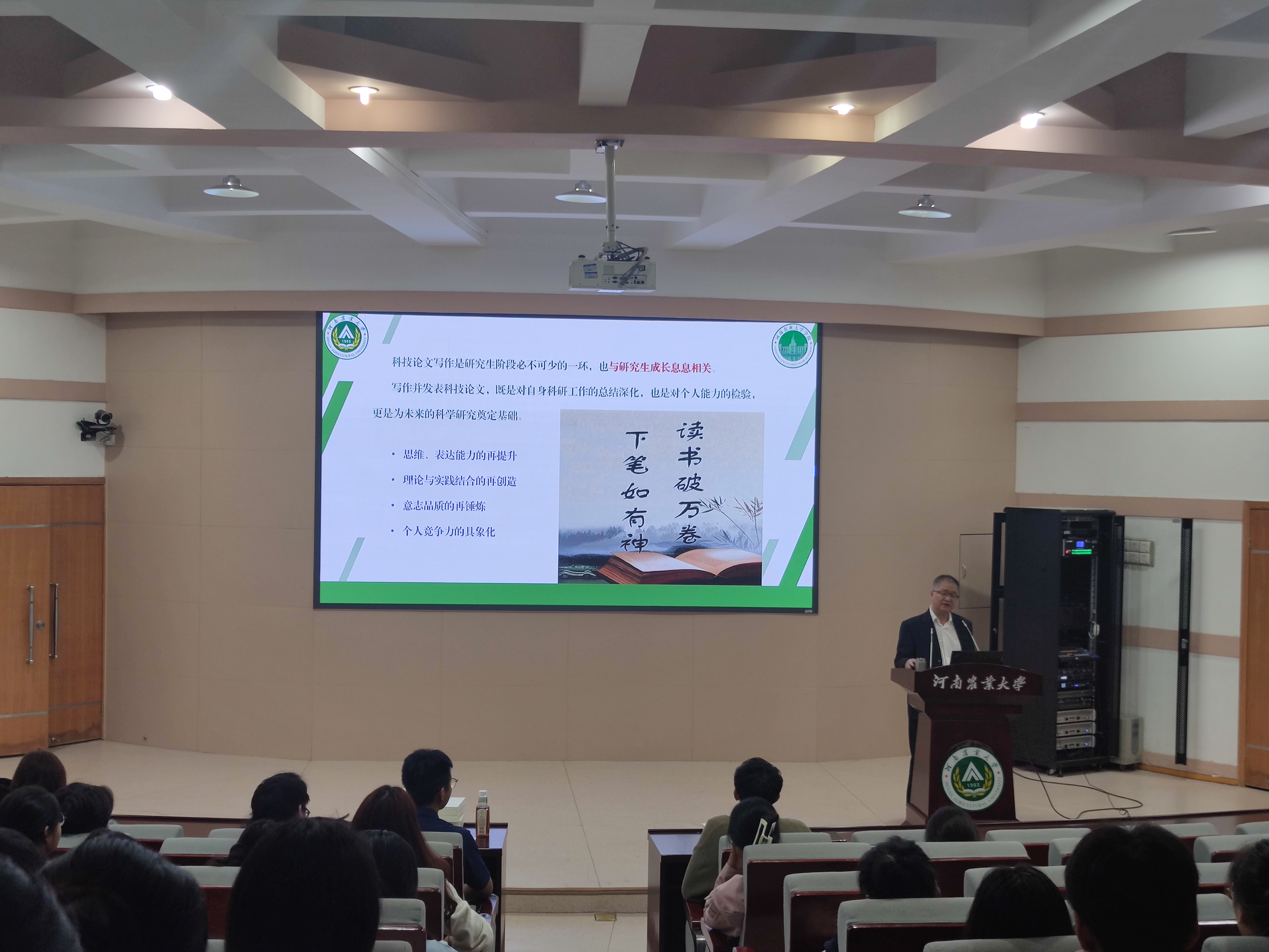 邓俊锋以“助力研究生科技论文写作”为题,围绕科技论文写作要点,论文的写作要求,论文目的及意义,如何做好科研,如何撰写好的论文等方面进行展开讲解。邓俊锋将论文写作与研究生生活相联系,并介绍性爱视频 学报的辉煌历史,对科研、论文写作和投稿等进行了全面剖析,重点讲述了论文的整体布局和构思。他详细介绍了论文的基本构成注意要点和投稿过程中的一些注意事项,使大家对文章从选题论文的写作到投稿到发表的过程有了深刻理解和感悟。
