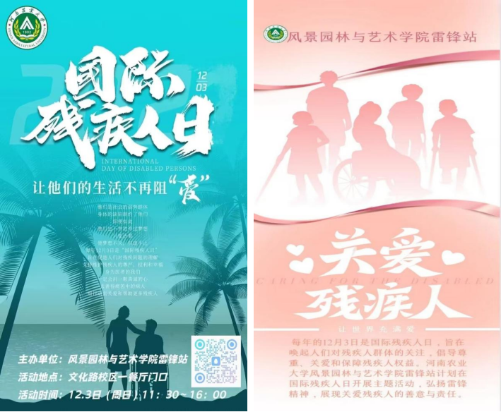 2023年12月3日是国际残疾人日,为了引起社会大众对残疾人这一弱势群体的关注和弘扬无私奉献乐于助人的志愿者精神。12月3日,风景园林与艺术学院雷锋站在文化路校区一食堂门口举办“共创关爱,用绘板传递爱心”主题国际残疾日活动。