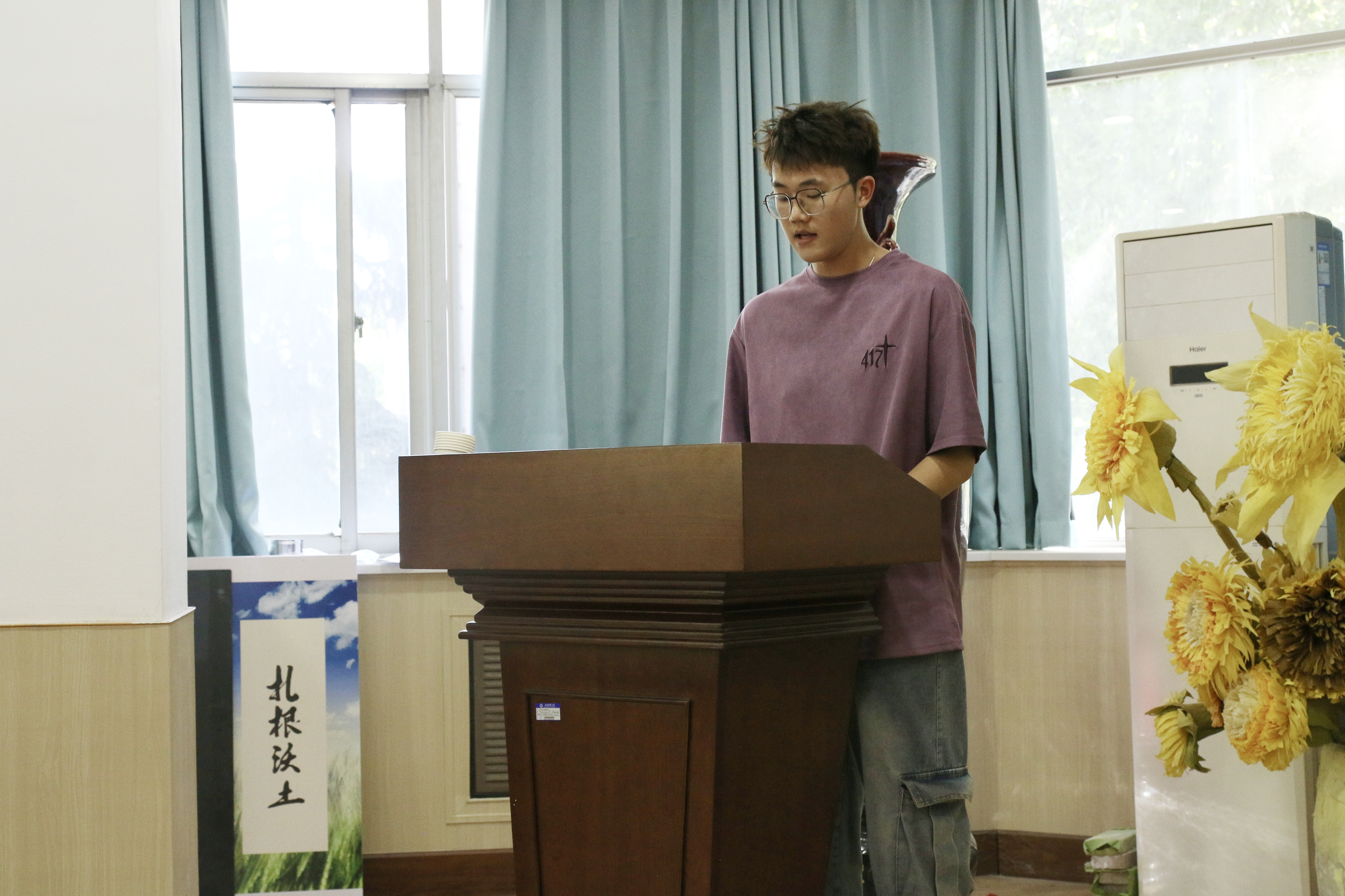 21级学生代表王正昊发言。他表示作为农大学子,要在思考中成长、在剖析中建构、在实践中淬炼,将自己的创新创意与专业知识结合,设计和制作出具有农大特色、校园特色的文创作品。