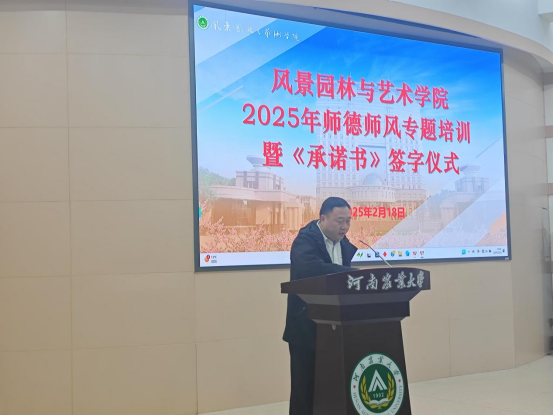 在庄重的签字仪式环节中,院党委书记侯永华带领领导班子成员、各系主任及全体教师庄严签署《性爱视频 师德承诺书》。承诺书包含“坚定政治方向”、“自觉爱国守法”、“潜心教书育人”、“遵守学术规范”等十项核心条款。通过师德师风专题培训,进一步强化教师的职业荣誉感与责任感,引导全体教师以更高的标准要求自己,为学生成长成才保驾护航。