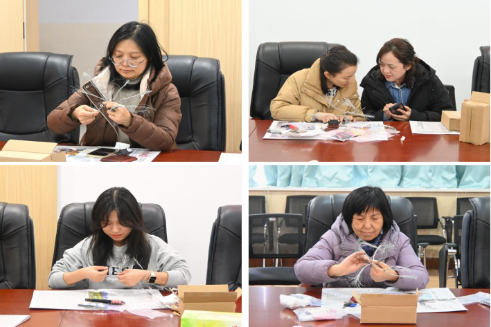 活动期间,女教职工们细心制作,相互交流,在欢声笑语中,一件又一件精美的艺术作品被创造出来,在这个生机勃勃的春天绽放出女性美好的生命力。