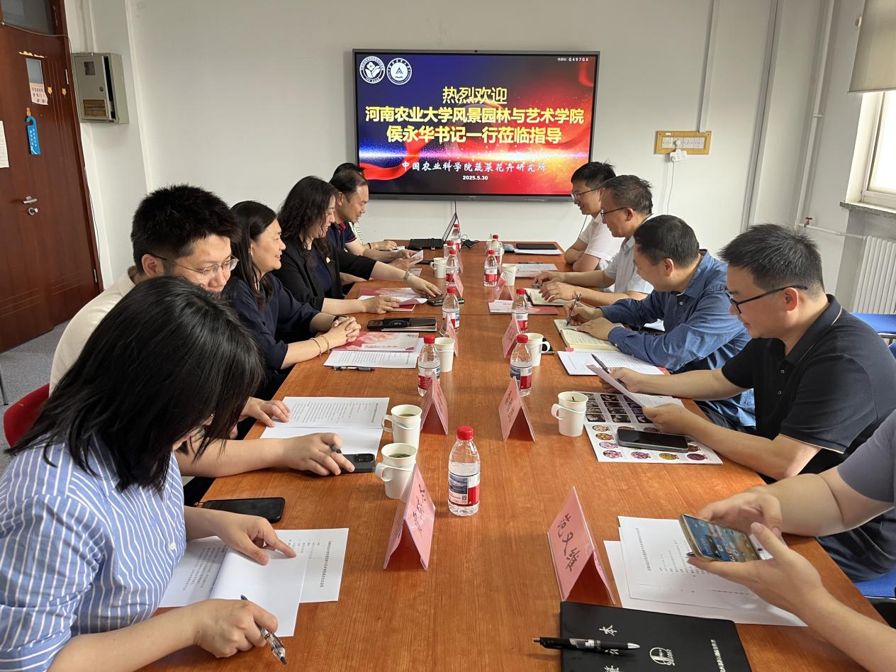 党委书记侯永华、副院长李永华、教授王政、教授雷雅凯及园林系副主任黄淦等一行5人赴中国农业科学院蔬菜花卉所,就科研合作、人才培养等进行交流学习。蔬菜花卉所副所长翟研宁、科研处处长李蕾、花卉研究室主任杨树华及各课题组负责人出席活动。