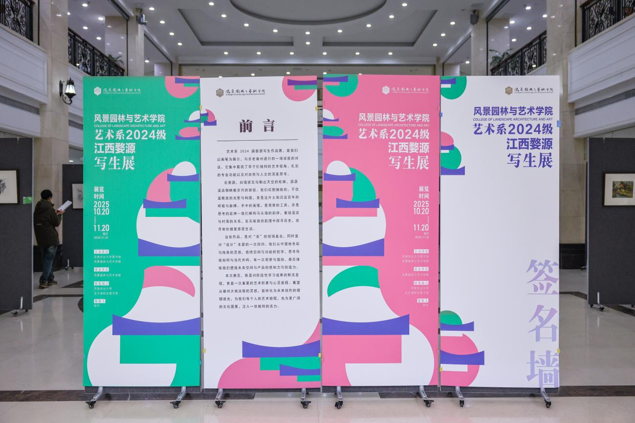 风景园林与艺术学院艺术系2024级江西婺源写生展正式开幕!在学院领导和老师的引导下,嘉宾在签名墙上留下签名,并一同参观此次作品展。