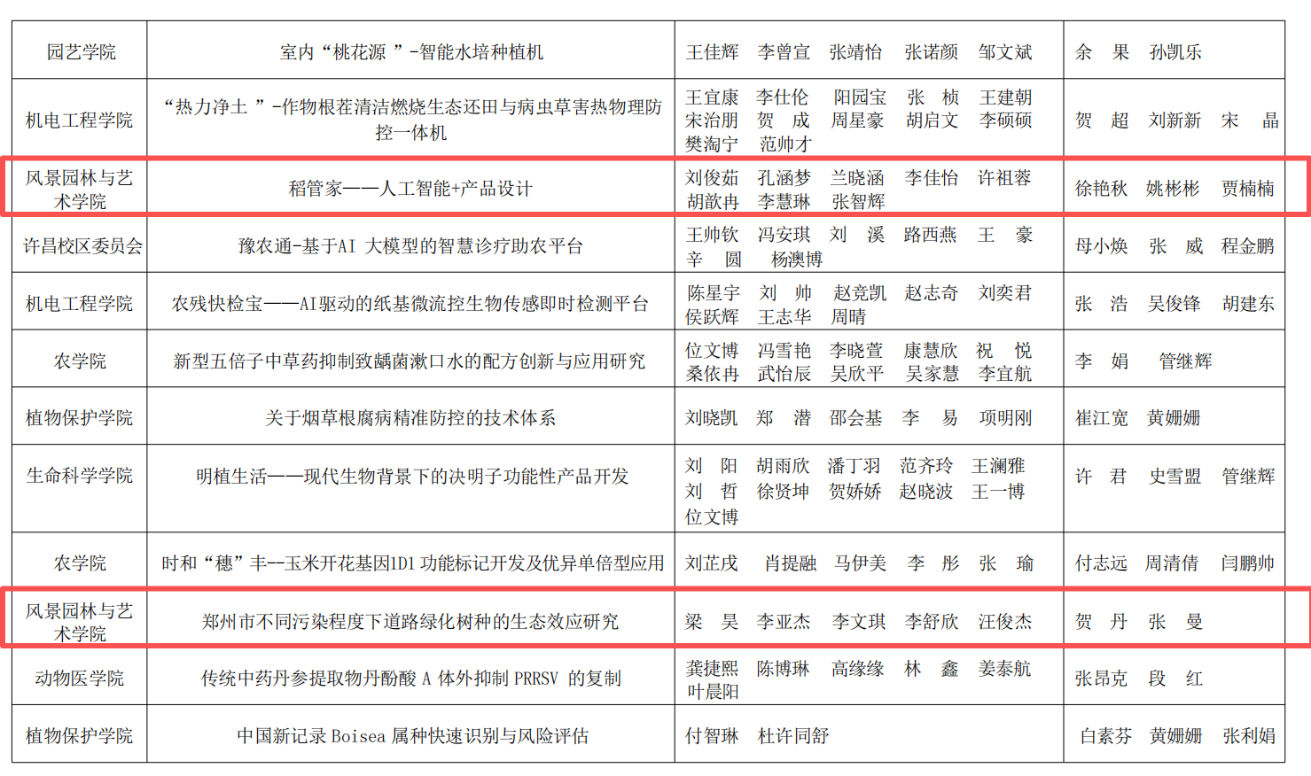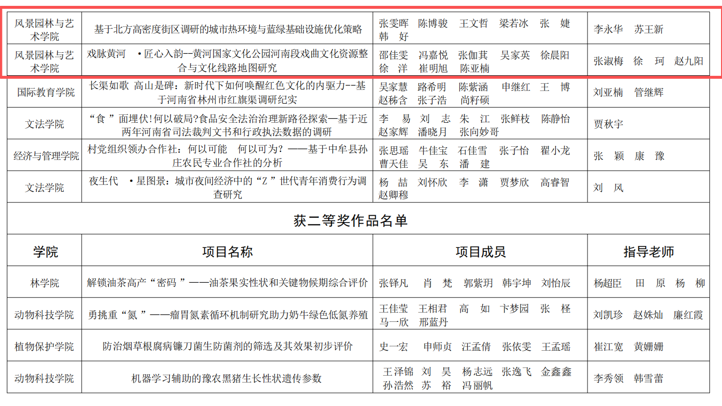 获奖作品中,《豫见未来·乡链世界---设计赋能乡村振兴文化融创实践调研》项目获得特等奖。《有基于北方高密度街区调研的城市热环境与蓝绿基础设施优化策略》《戏脉黄河·匠心入韵--黄河国家文化公园河南段戏曲文化资源整合与文化线路地图研究》两个项目获得一等奖。《稻管家——人工智能+产品设计》《郑州市不同污染程度下道路绿化树种的生态效应研究》两个项目获得二等奖。三等奖作品有《河南省乡村旅游信息服务供需匹配现状及智慧化赋能对策调查研究》《中原民俗文化应用推广研究——以许昌市霍庄村社火文化为例》《台风模拟实验教育展示装置》。每一份荣誉的取得,既离不开指导老师的悉心指导与专业引领,也凝聚着同学们的不懈拼搏与团队协作。这不仅生动展现了性爱视频