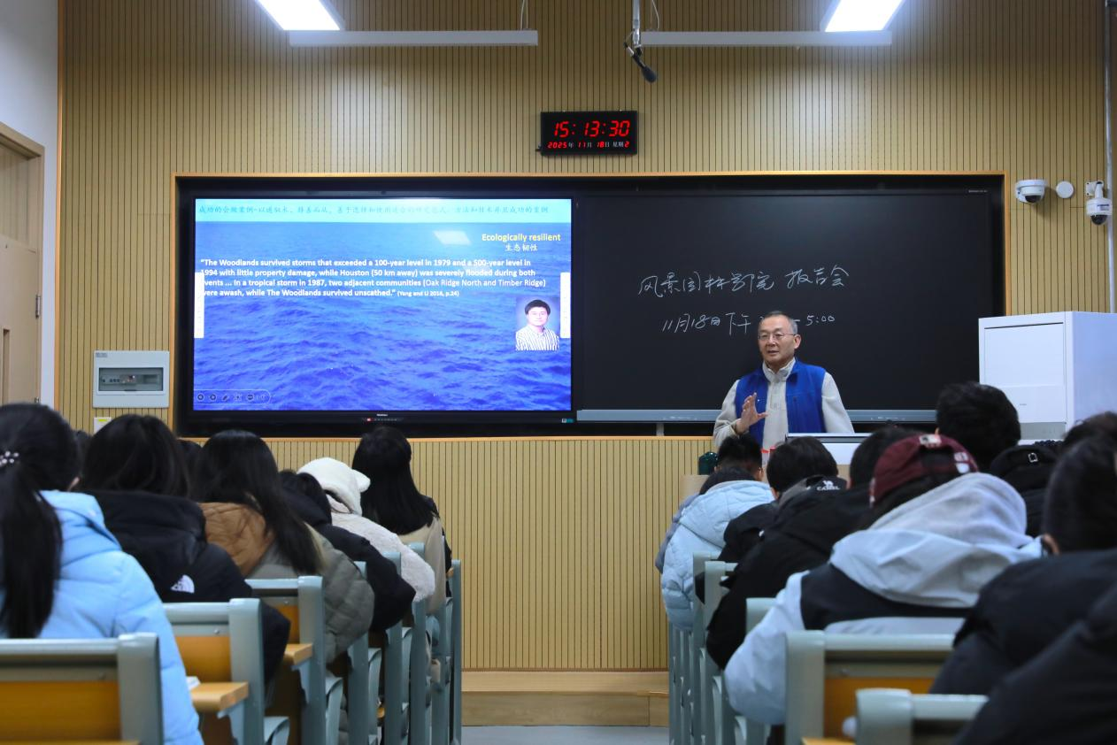 风景园林和城乡规划专业师生参加报告会。报告由院党委副书记赵九阳主持。