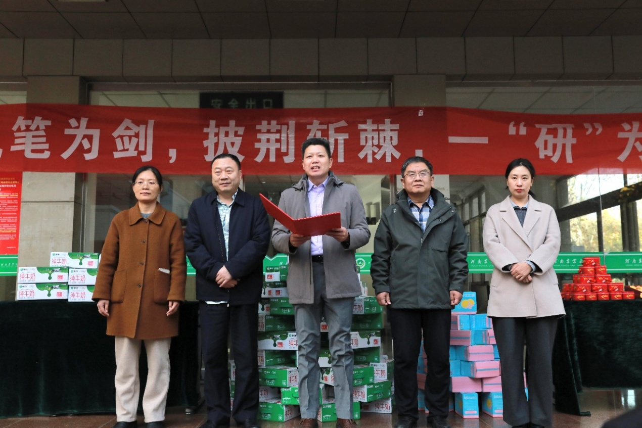 在文化路校区13号楼开展“执笔为剑,披荆斩棘,一‘研’为定”考研送温暖活动。学院党委书记胡明忠、院长李永华、副院长阴予兴、各年级辅导员及毕业生班主任共同到场,为学子们加油鼓劲。