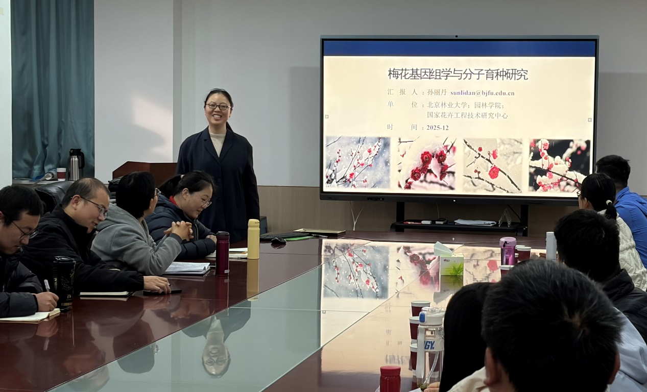 12月7日,北京林业大学园林学院孙丽丹教授应学院邀请,在文化路校区13号楼2楼会议室作题为《梅花基因组学与分子育种研究》的学术报告。学院党委书记胡明忠、院长李永华、师生代表参加报告会。